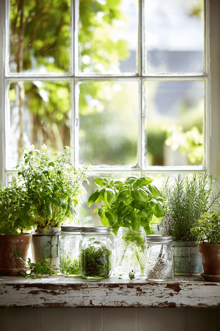 Mason jar herb gardens combine beauty and function in farmhouse spring home decor ideas. Placed near windows, they bring greenery and freshness into kitchens. Growing herbs adds both scent and practicality. The jars keep everything simple and true to farmhouse style. These setups feel creative and useful. Bring life into your space with farmhouse spring home decor ideas like this!