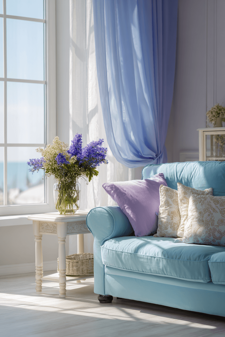 Light, flowing curtains refresh farmhouse spring home decor ideas by softening the space and letting natural light shine through. Gentle hues like blush, pale blue, or soft green create an uplifting seasonal feel. Paired with wood accents, the look stays grounded and cozy. Sunlight filtering through adds warmth and openness throughout the room. This small update makes a noticeable difference. Click for more farmhouse spring home decor ideas that brighten every corner!