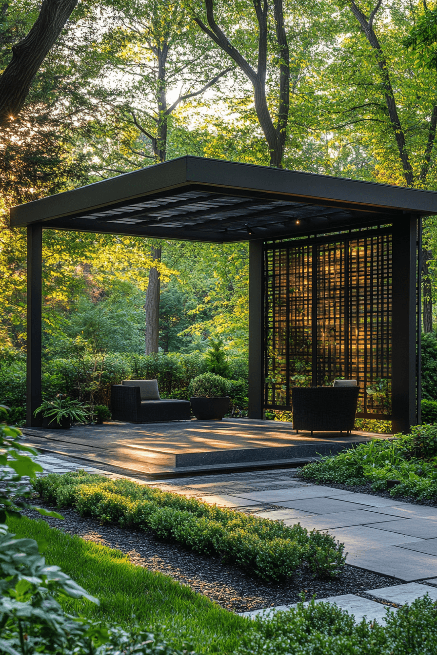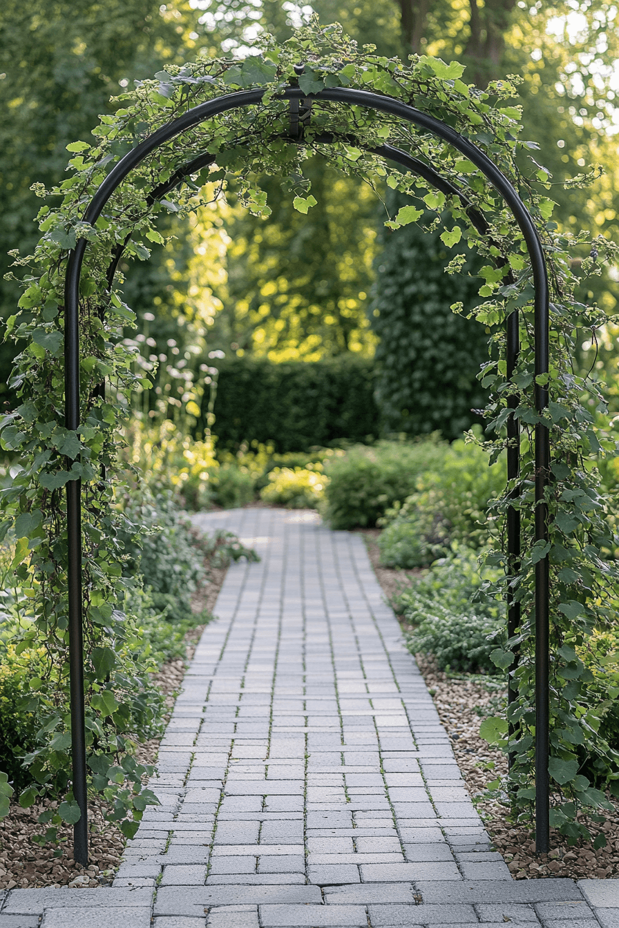 Clean lines and striking structure make this one of the most eye-catching garden arbor ideas for a modern outdoor setting. Crisp angles and geometric forms create a bold focal point that instantly upgrades your landscape. Materials like powder-coated metal or smooth painted wood keep everything sleek and versatile. Soft climbing greenery like ivy adds balance by blending structure with nature. The overall look feels polished yet inviting. Discover fresh garden arbor ideas that bring modern style to life.