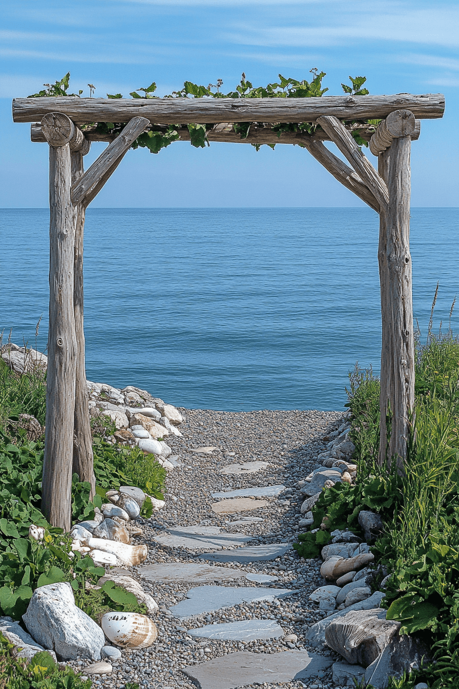 For coastal environments, garden arbor ideas using durable materials create a relaxed seaside atmosphere. Driftwood details and subtle shell accents add natural charm. Climbing plants suited for coastal climates soften the structure. The overall look feels breezy and effortless. It’s perfect for extending beach-inspired style into your yard. Discover garden arbor ideas with ocean-inspired appeal.