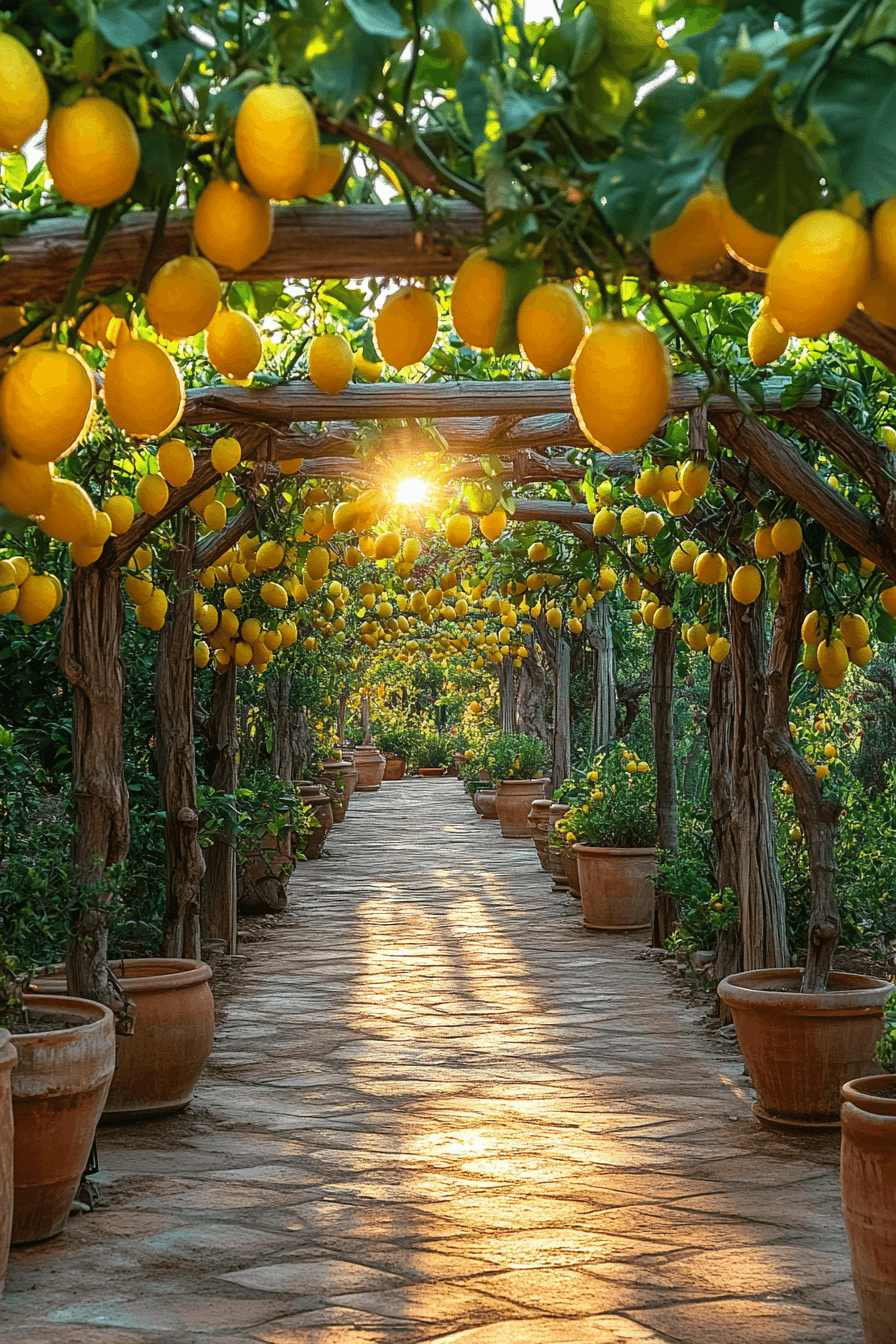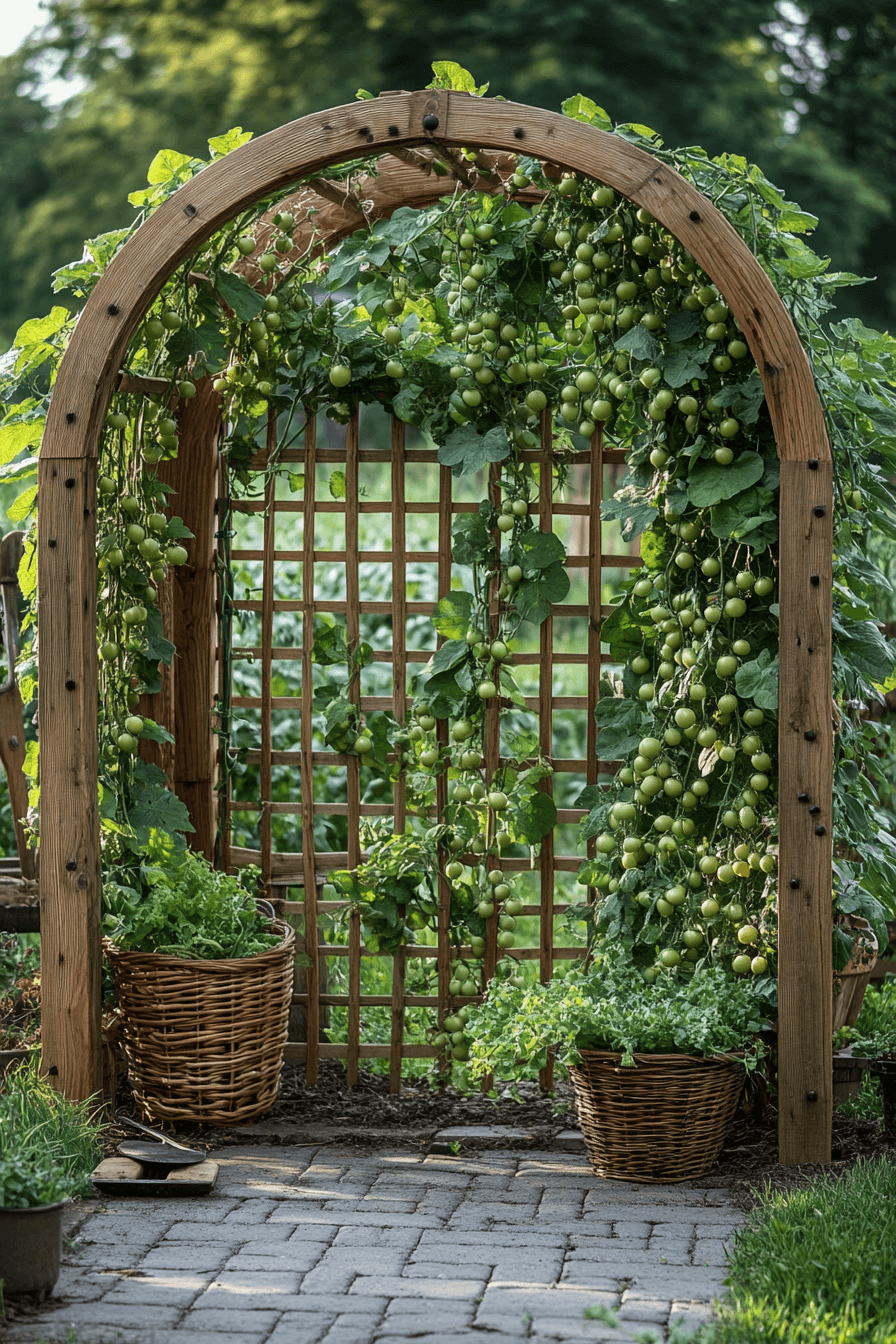 Bring a Mediterranean-inspired feel to your space with garden arbor ideas designed for fruit-bearing plants. Wooden or wrought iron structures support vines like grapes or citrus, adding beauty and function. This approach maximizes vertical space while creating a warm, sunlit atmosphere. The combination of greenery and fresh fruit feels vibrant and full of life. It’s both practical and visually stunning. Explore garden arbor ideas that blend beauty with productivity.
