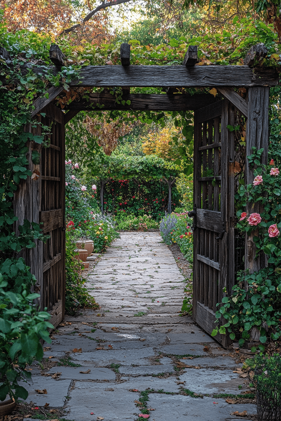 A classic favorite among garden arbor ideas, a rustic wood gateway brings warmth and organic beauty to any garden space. Natural or weathered finishes help the arbor blend seamlessly into surrounding greenery and pathways. Climbing roses or cascading wisteria add a soft, romantic touch that feels effortlessly charming. It creates an inviting entrance that draws you into the garden. The entire look feels cozy and naturally beautiful. Uncover more garden arbor ideas that celebrate rustic charm.