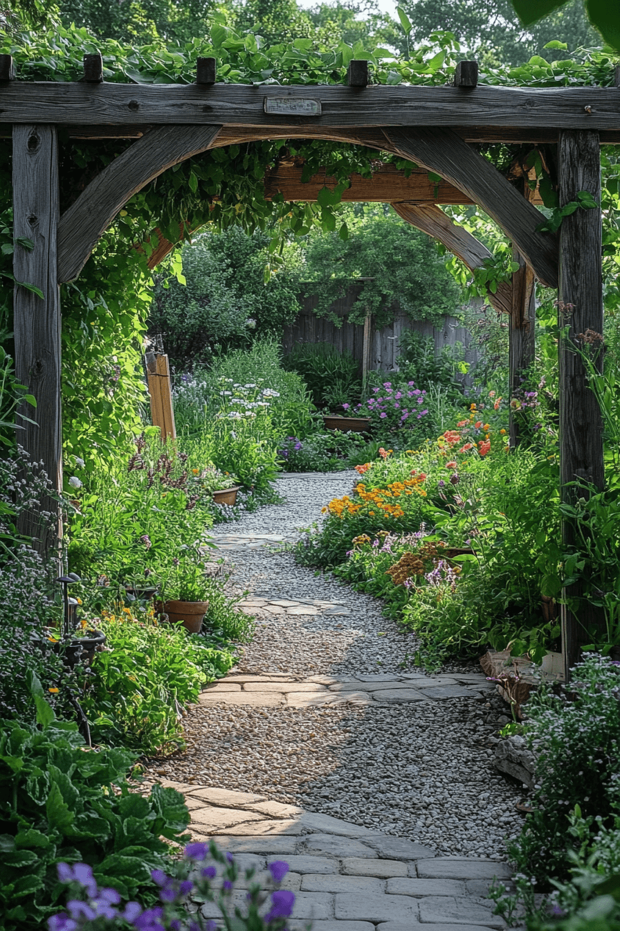 Functional beauty shines with garden arbor ideas that support edible plants. Climbing vegetables like beans or tomatoes create a lush and productive display. A sturdy frame ensures everything grows strong and supported. This setup adds greenery while offering fresh ingredients. It’s practical and rewarding. Discover garden arbor ideas that nourish both garden and kitchen.