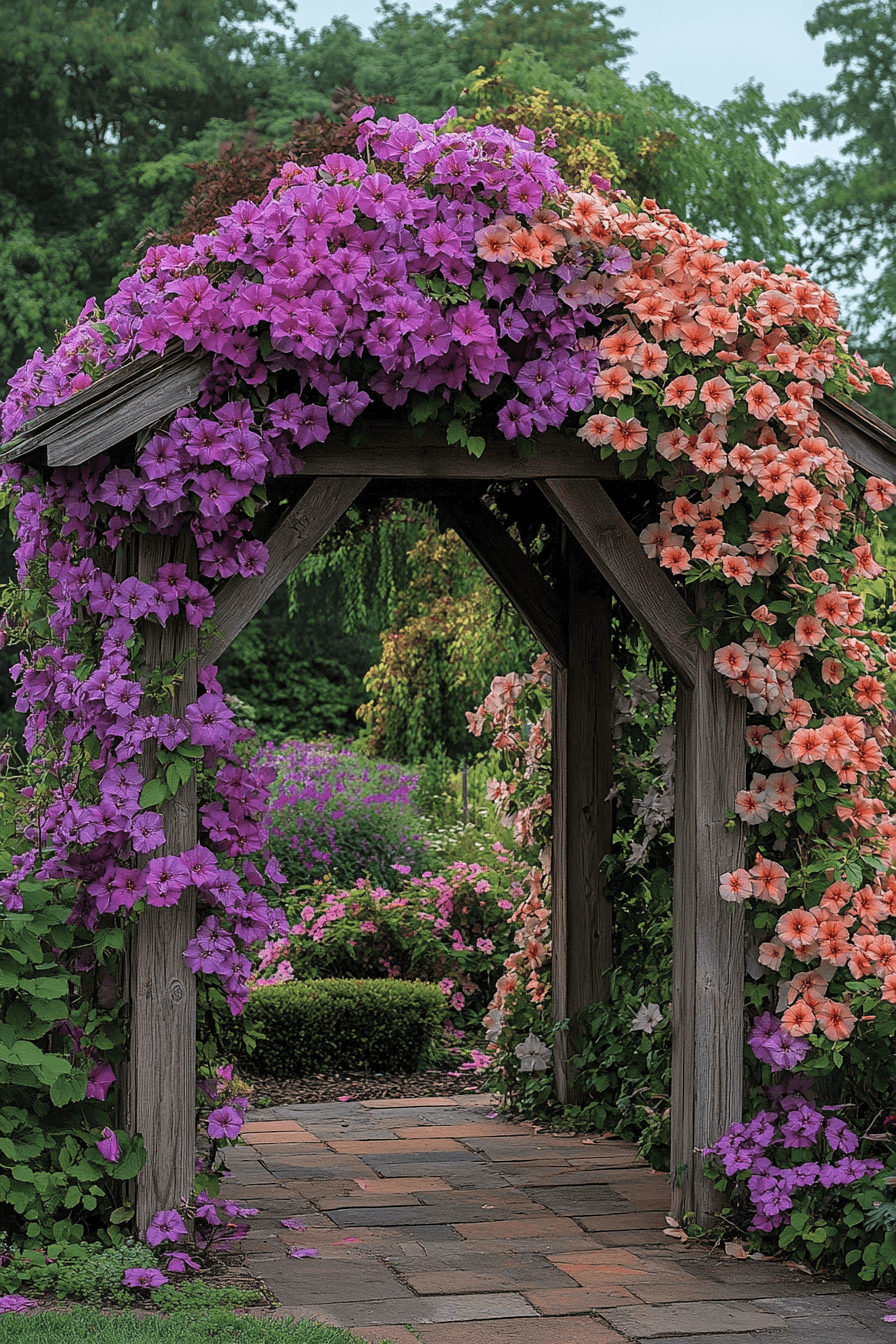 Bright and colorful, garden arbor ideas with cascading clematis create stunning visual displays. These flowers add movement and depth to your garden. Mixing varieties extends blooming seasons. It’s perfect for pathways or focal points. The result feels vibrant and elegant. Discover garden arbor ideas full of floral beauty.