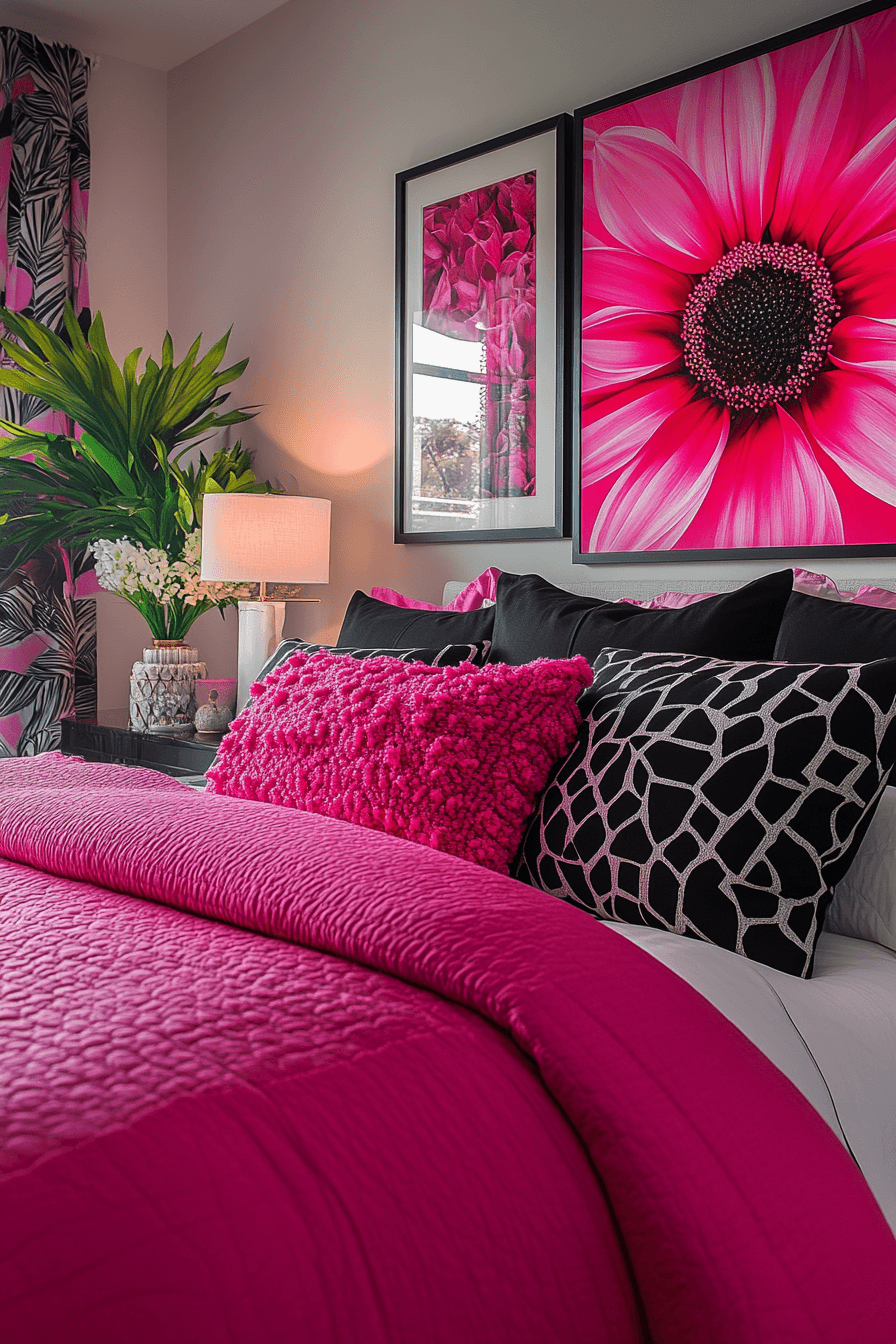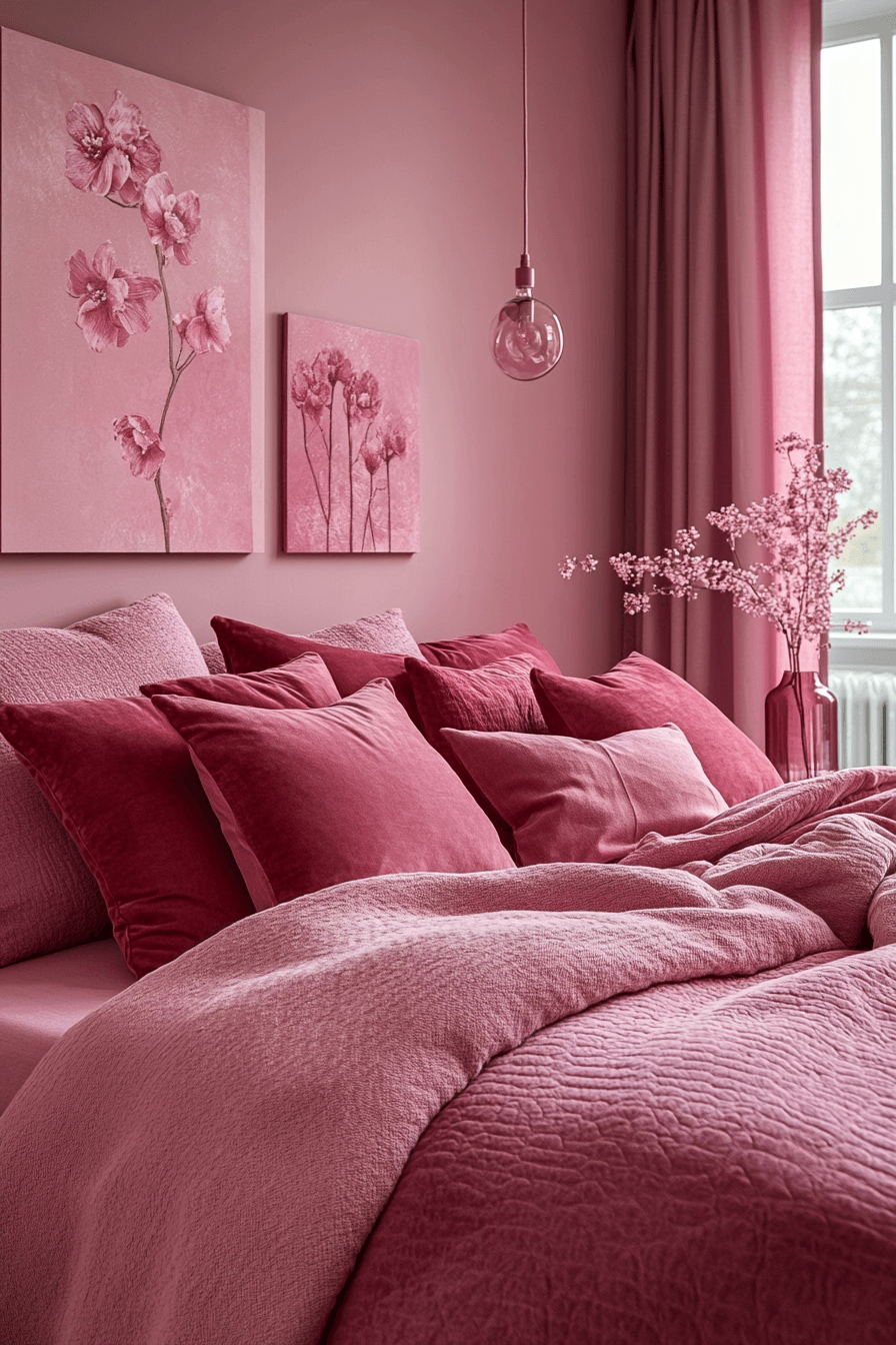 Layering multiple shades of pink can create depth and personality in girlie room decor without feeling overwhelming. Combining soft blush with vibrant fuchsia adds contrast while maintaining cohesion. Mixing textures like velvet and glossy finishes keeps the design visually interesting. Subtle metallic accents help break up the color palette. The overall look feels bold yet balanced. Explore more girlie room decor ideas with tonal styling.