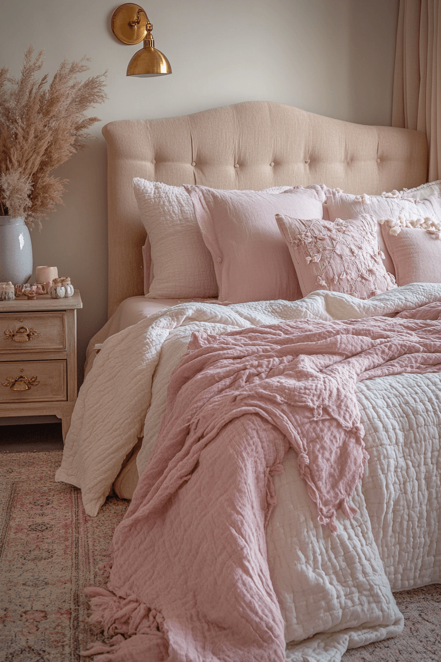 Layering textures and soft tones can turn girlie room decor into a cozy, welcoming sanctuary. Combining velvet, satin, and plush fabrics adds dimension while maintaining comfort. A neutral base allows pastel accents to stand out without overwhelming the space. Adding a tufted headboard or soft throw enhances the inviting atmosphere. The result feels warm, stylish, and perfect for everyday relaxation. Discover more girlie room decor ideas designed for comfort and charm.