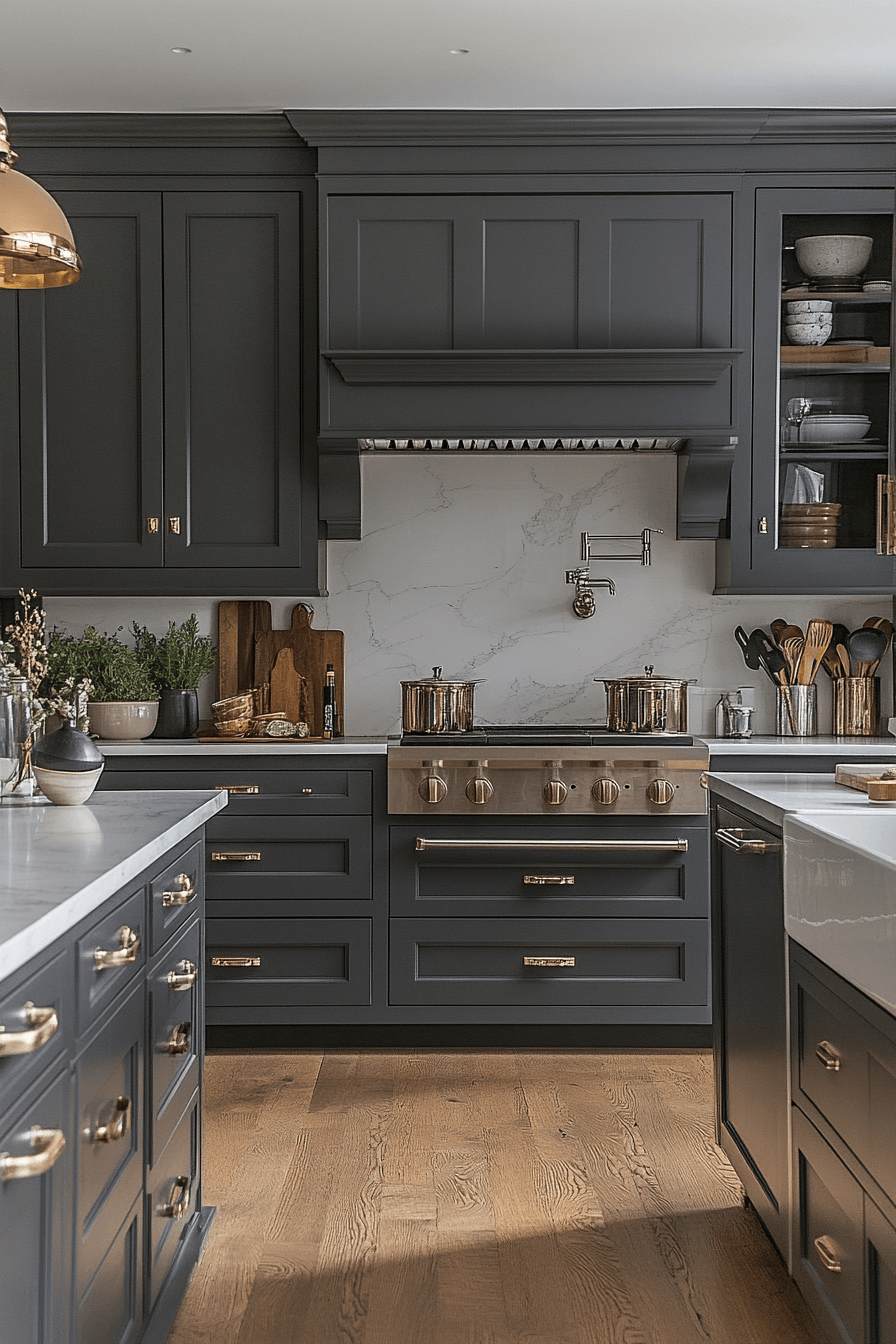 Charcoal-toned gray kitchen cabinets create a bold and dramatic kitchen environment with undeniable presence. This deep gray shade adds contrast and intensity while remaining polished and sleek. It works beautifully with metallic finishes, warm wood details, or luxurious jewel tones. The color feels strong and intentional without overwhelming the room. Charcoal gray is perfect for kitchens that want impact with refinement. Discover charcoal gray kitchen cabinets that make a confident design statement!