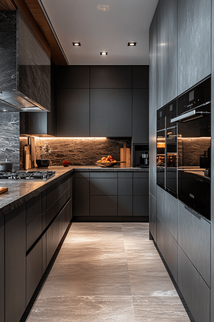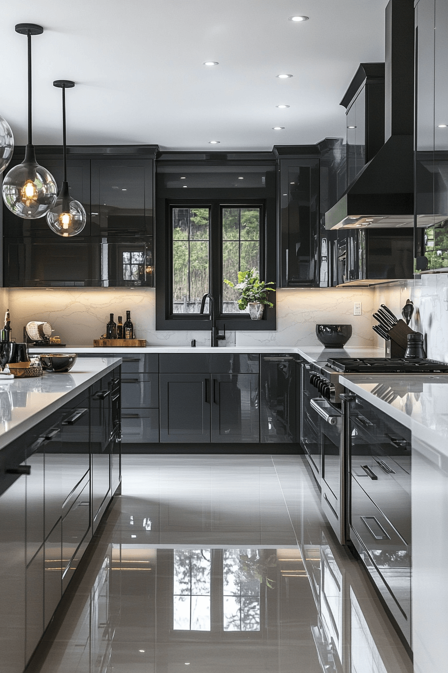 6. High-Gloss Graphite Kitchens
