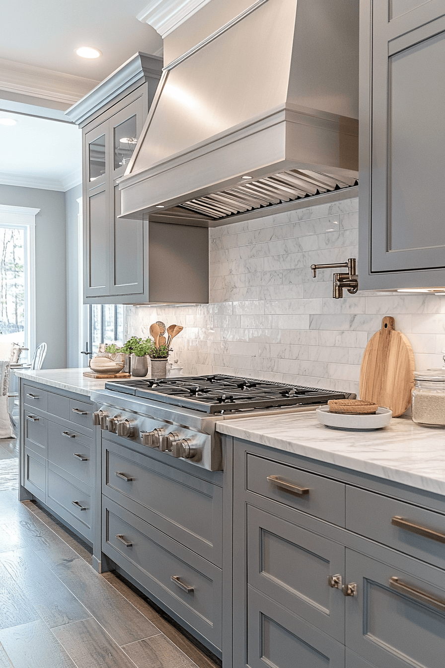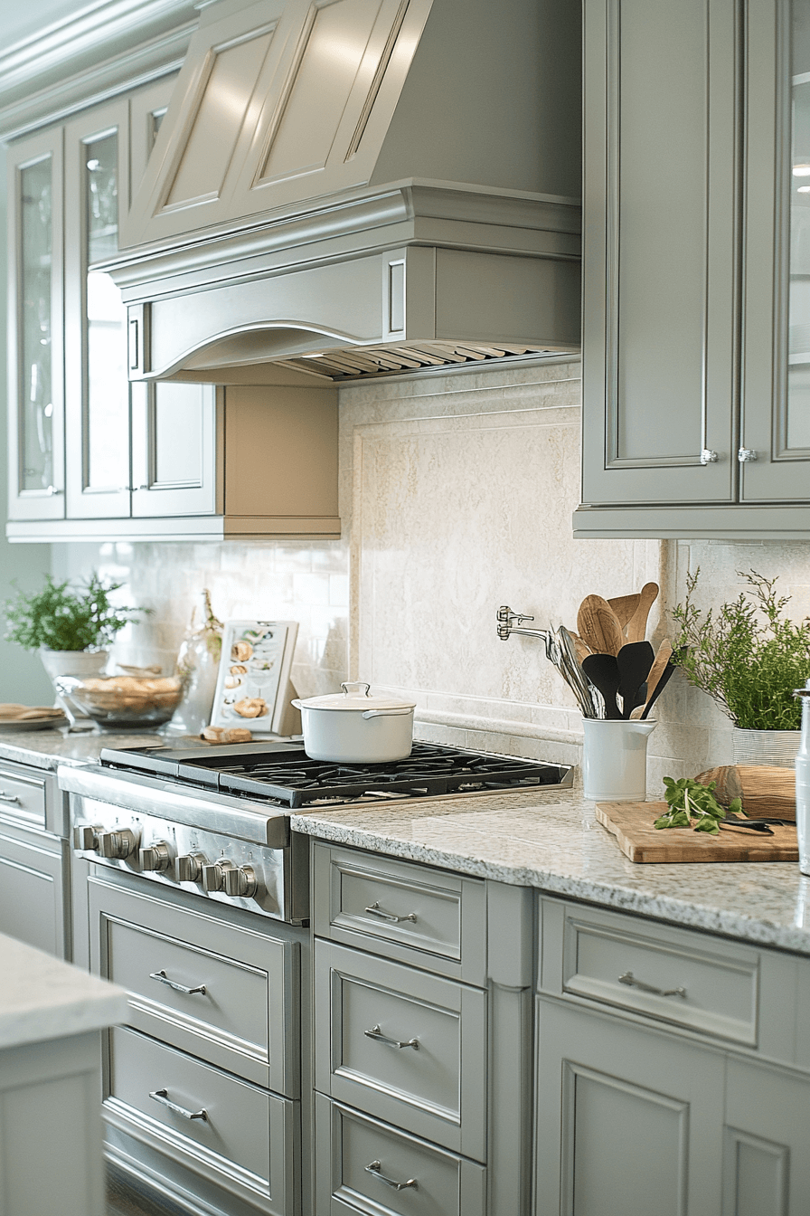 Silver mist gray kitchen cabinets bring a soft luminosity that enhances light and openness. This gentle gray tone carries a subtle sheen that feels refined yet relaxed. It pairs beautifully with both warm neutrals and cool metallic finishes. Silver mist works well in transitional kitchens that blend traditional and modern elements. The space feels airy, polished, and timeless. Explore silver mist gray kitchen cabinets that glow with understated elegance!