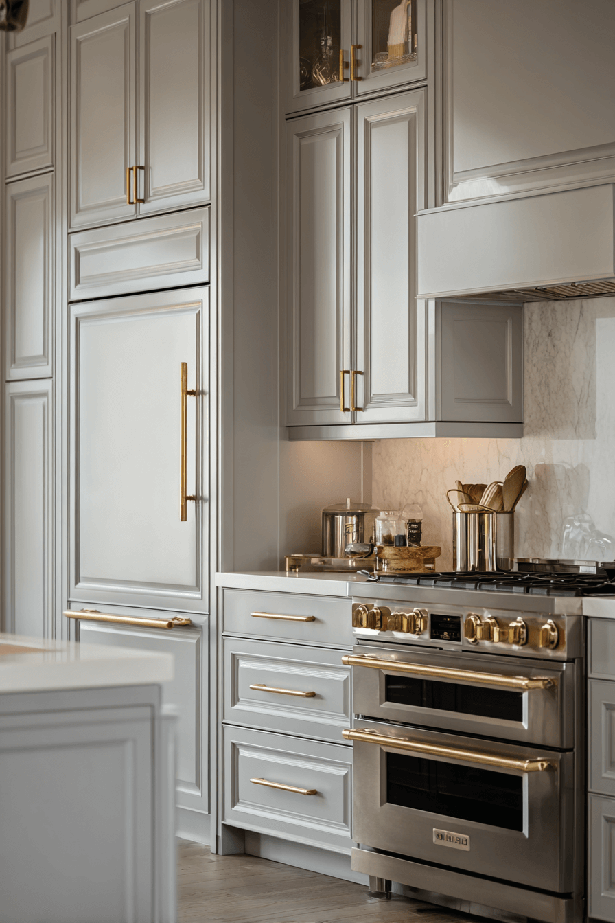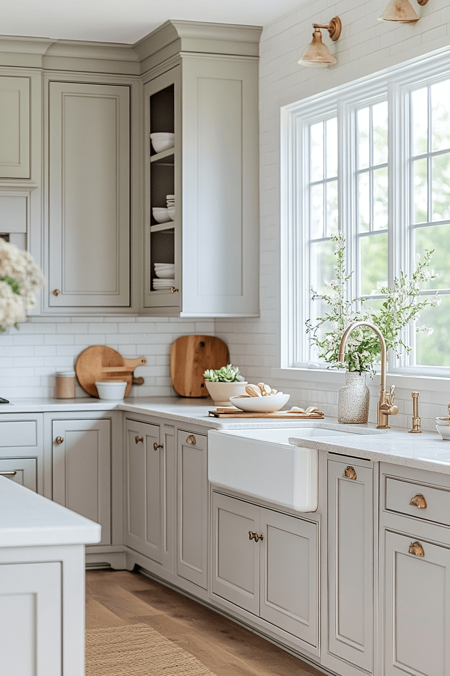 Oyster-inspired gray kitchen cabinets bring quiet luxury with a soft, luminous tone. This refined gray shade feels rich without appearing heavy. Oyster gray pairs beautifully with marble surfaces and metallic accents. The kitchen feels upscale yet welcoming. It offers elegance without excess. Discover oyster gray kitchen cabinets that embody subtle sophistication!
