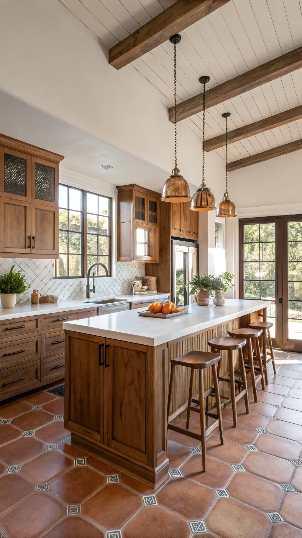 • Warm terracotta tones