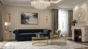 There’s something grounding about walking into a room where the floor itself feels like architecture. The cool, mirror-like surface underfoot makes every piece of furniture feel like it’s floating on intention.