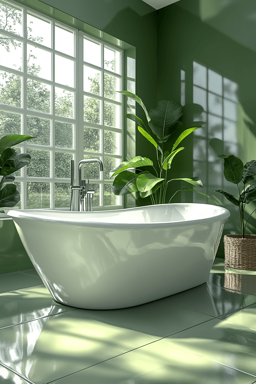 Pairing crisp white finishes with a light sage green bathroom creates an uplifting and timeless feel. The contrast keeps the green soft yet vibrant. White trim and tile allow the sage to glow naturally. Adding woven textures or subtle patterns introduces depth without clutter. The result feels balanced and cheerful from every angle. Embrace this bright and harmonious pairing for a bathroom that always feels fresh.