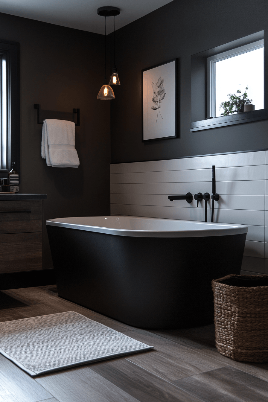 4. Bold Black Bathroom Oasis
