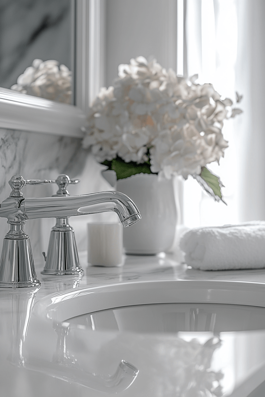 Chrome finishes elevate luxurious bathrooms with reflective surfaces that add clarity and brightness. Sleek fixtures create a crisp, modern edge. Light tones enhance the reflective quality. Minimal detailing keeps the look streamlined. Balanced textures add depth. The design feels clean and refined. Add polished chrome to your bathroom today!
