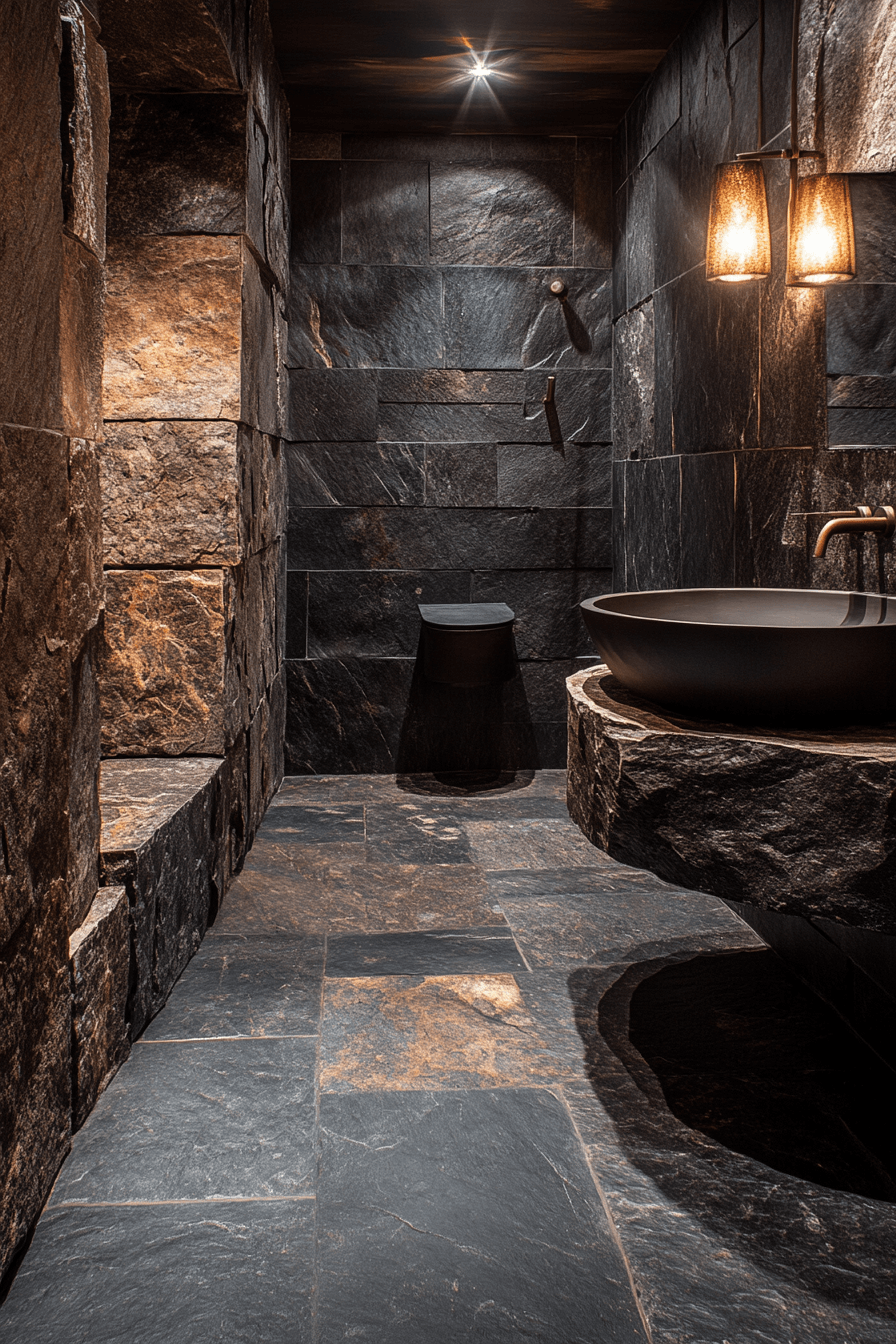 19. Dark Stone Bathroom Design