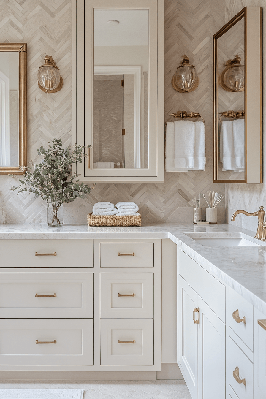 Golden details bring warmth into luxurious bathrooms by layering metallic accents that instantly elevate the design. Fixtures, mirrors, and hardware create a cohesive and polished finish. Neutral backgrounds allow the gold to stand out beautifully. Reflective surfaces amplify light throughout the space. Paired with smooth materials, the look feels sophisticated and balanced. The overall ambiance feels warm and inviting. Add radiant gold accents to your bathroom today!