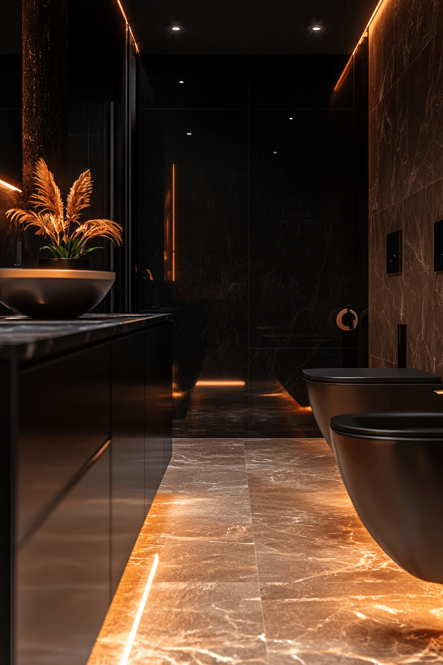 Deep tones transform luxurious bathrooms into bold, immersive spaces that feel intimate and sophisticated. Matte finishes create a strong visual foundation. Contrasting elements like marble or wood add balance. Lighting enhances texture and depth throughout the room. Subtle metallic touches introduce a refined edge. The design feels dramatic yet inviting. Embrace bold elegance in your bathroom today!