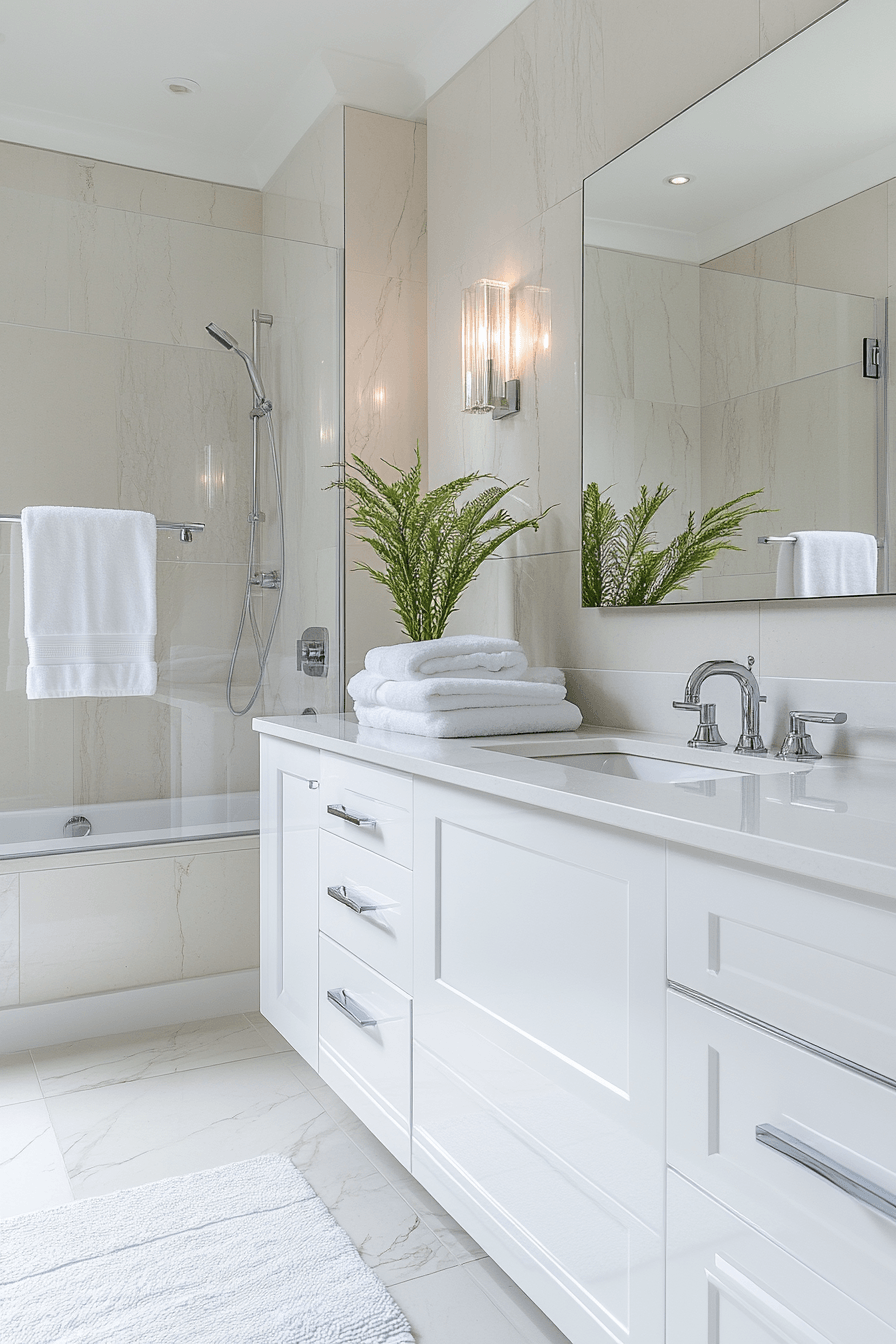 Reflective finishes brighten luxurious bathrooms by amplifying light and creating a sleek, polished aesthetic. Glossy surfaces enhance depth and movement. Metallic accents add a refined edge. Smooth textures maintain a clean look. Strategic lighting highlights every surface. The design feels modern and vibrant. Add shine to your bathroom today!