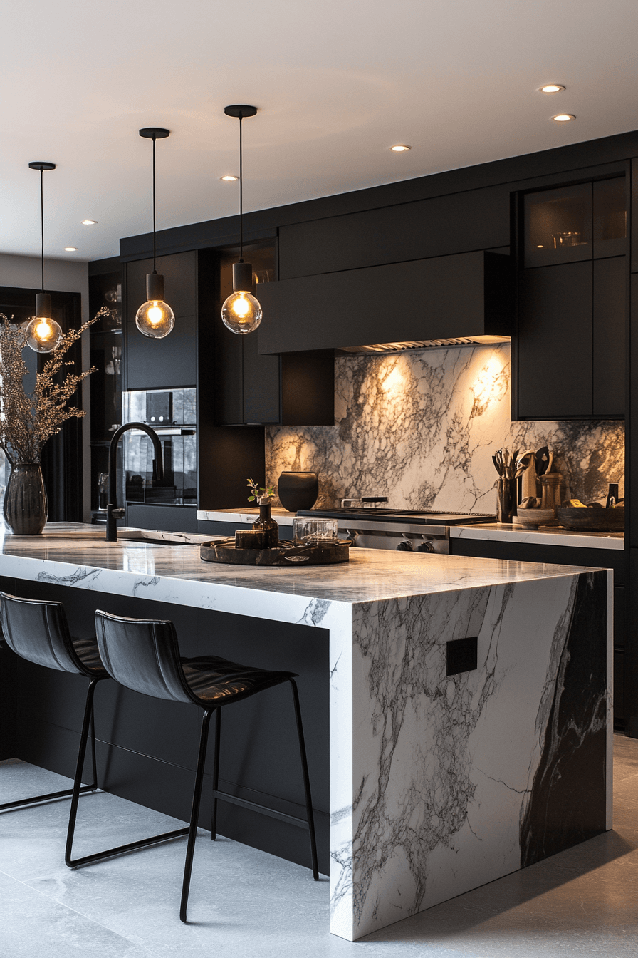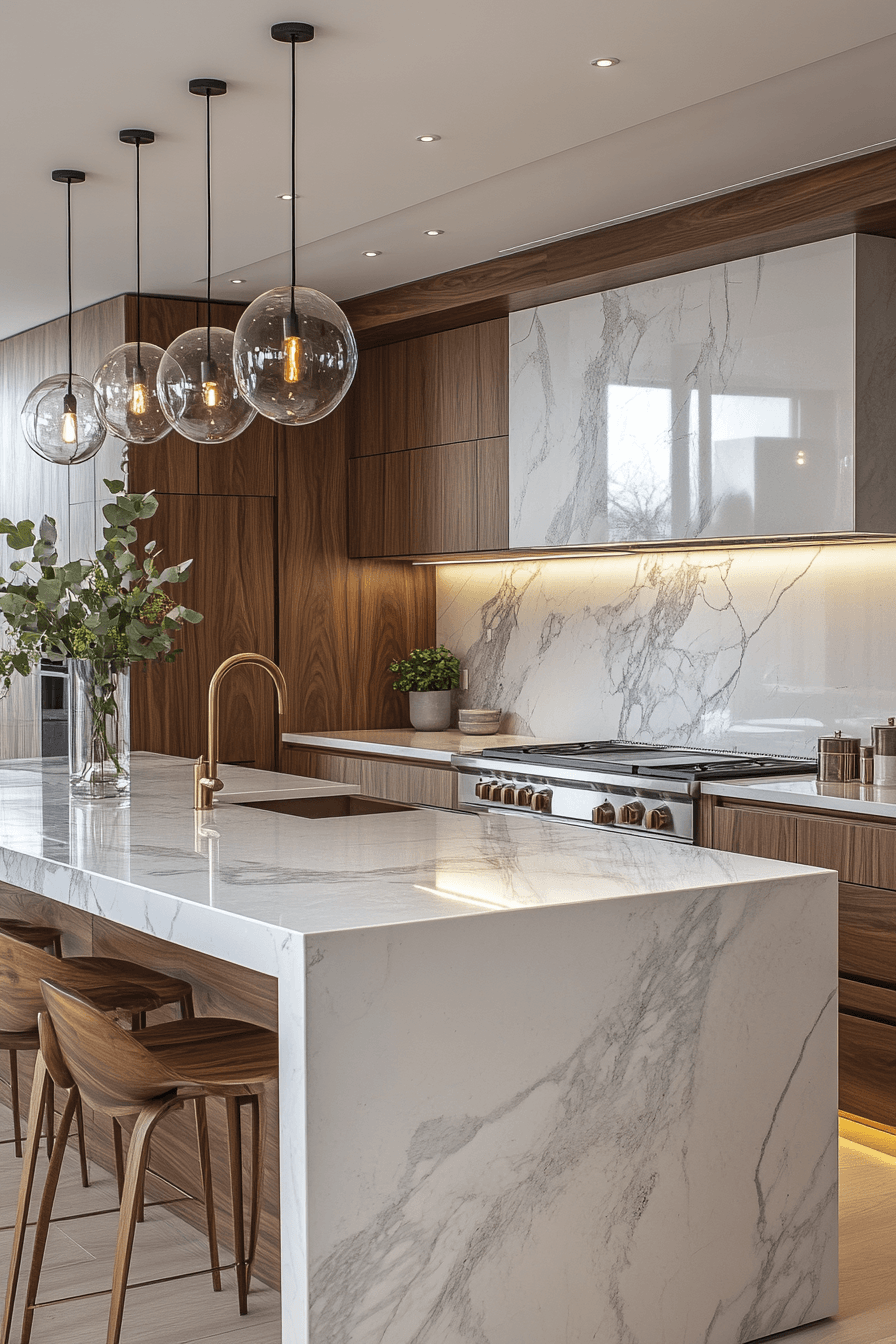 1. Elegant Marble Kitchen Space