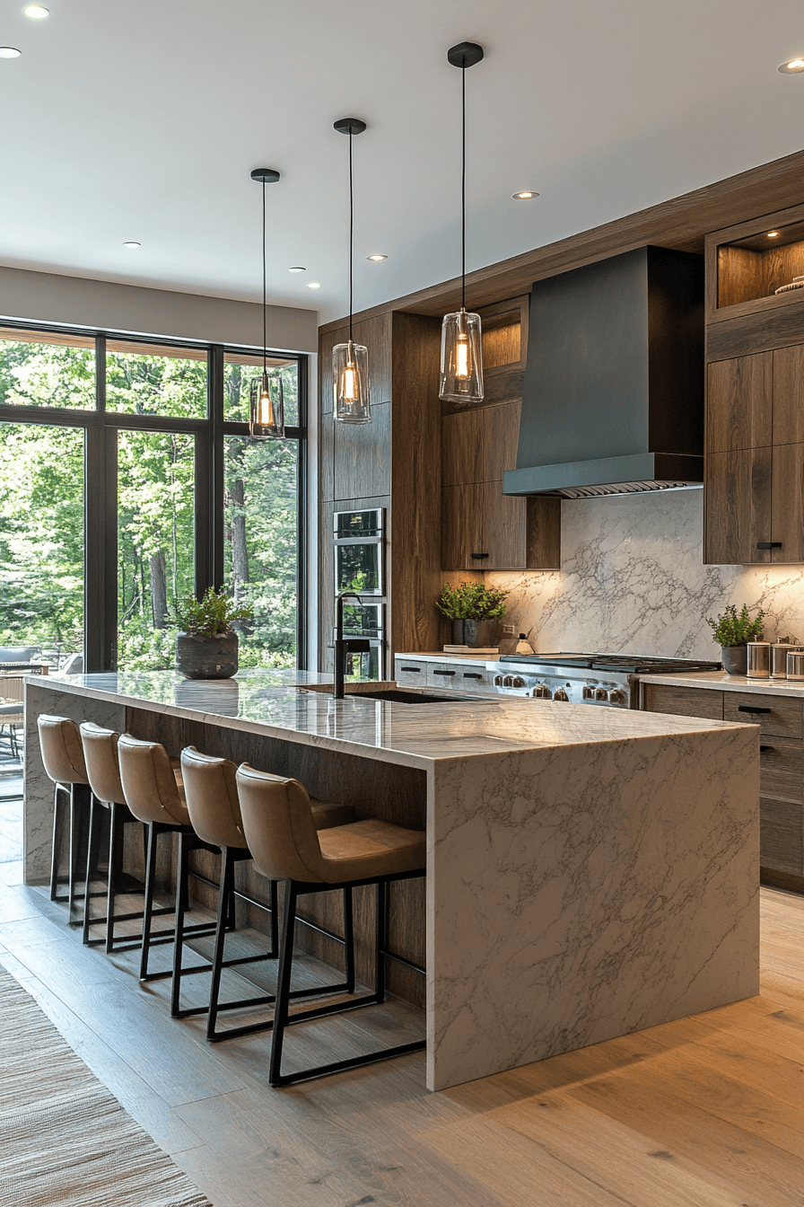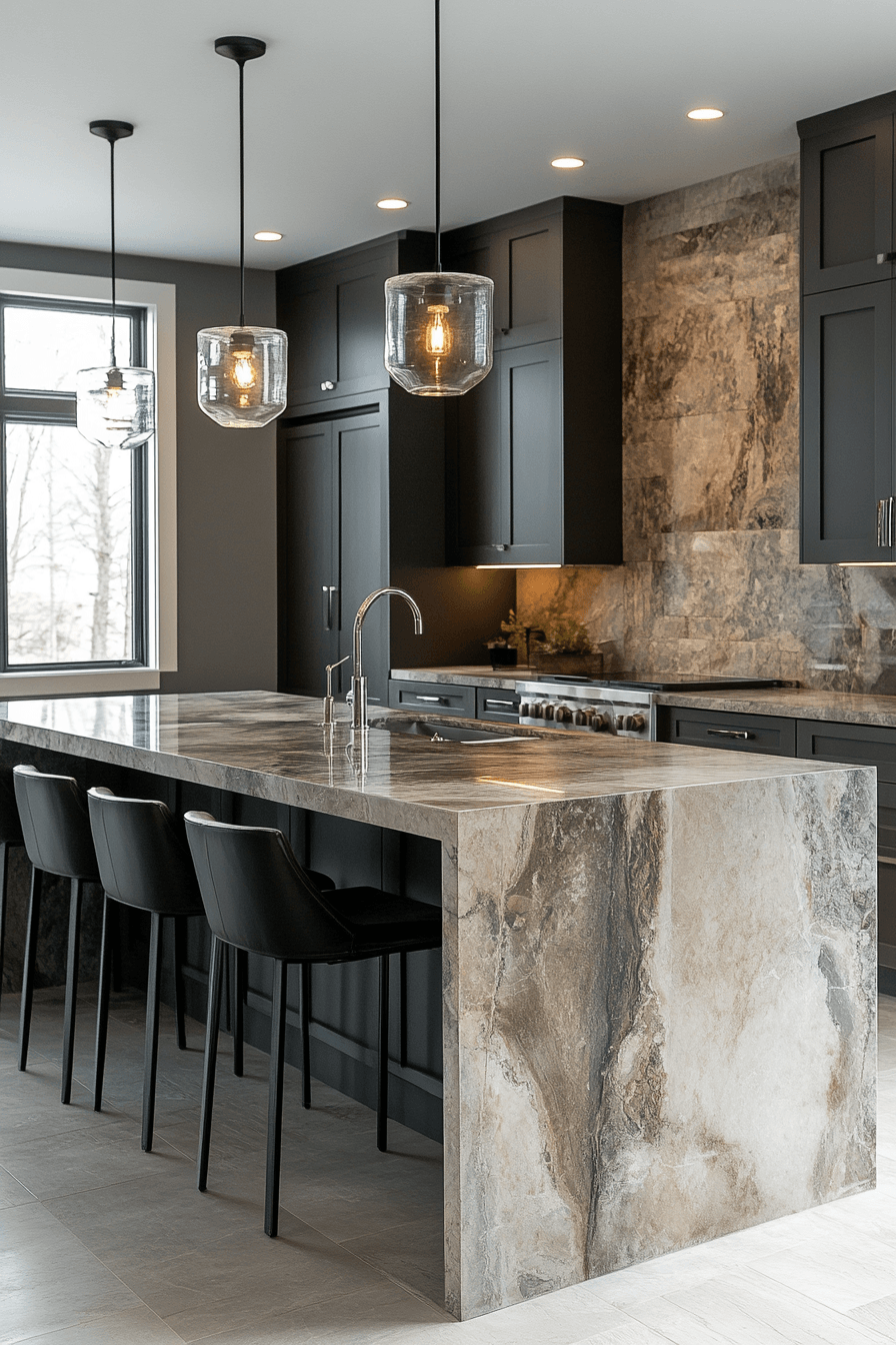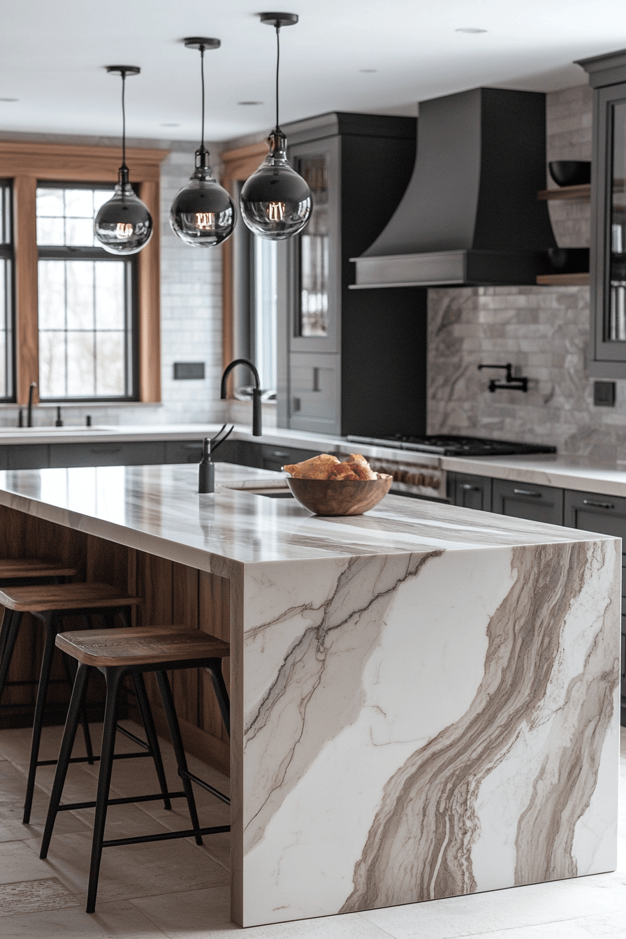 Waterfall countertops elevate luxurious kitchens with continuous surfaces that create a bold, sculptural statement. Seamless edges highlight natural materials. Clean lines enhance the architectural feel. The island becomes a striking focal point. Durable design adds practicality. The overall look feels modern and impactful. Upgrade your kitchen with waterfall edges today!