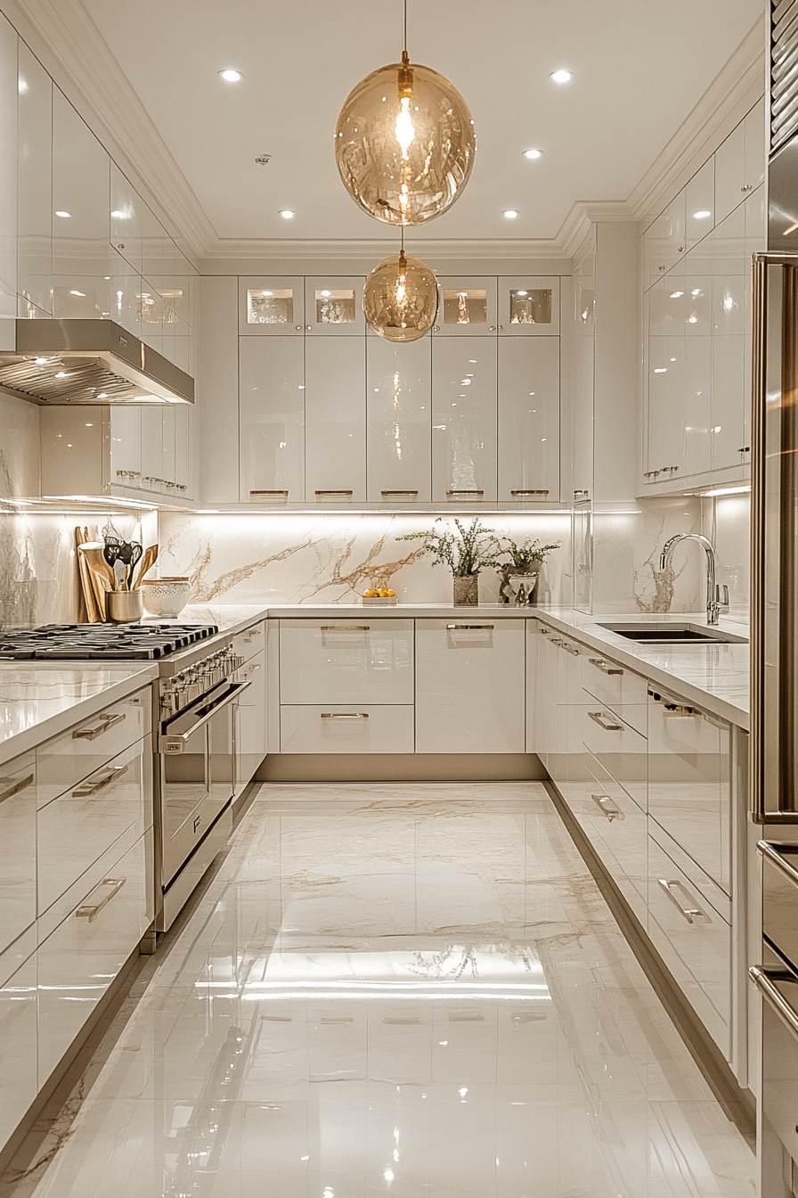 2. Sleek Reflective Kitchen Finish