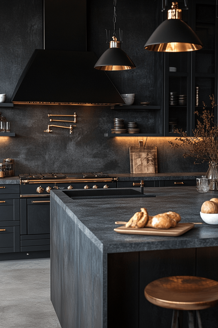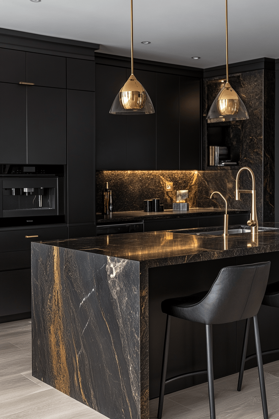 4. Dramatic Black Gold Kitchen