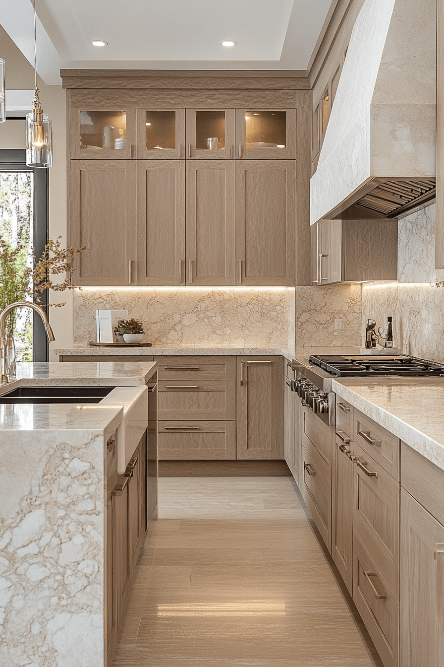 Soft neutral tones refine luxurious kitchens with a calm, cohesive palette that feels bright and inviting. Light colors reflect natural light beautifully. Layered textures add subtle depth. Matte finishes keep the look modern. Warm lighting enhances the softness. The kitchen feels open and elegant. Create a serene kitchen environment today!