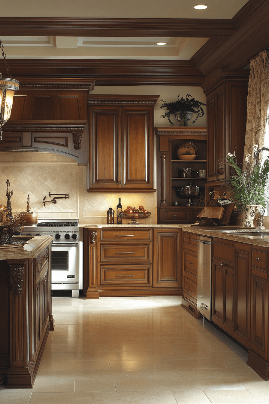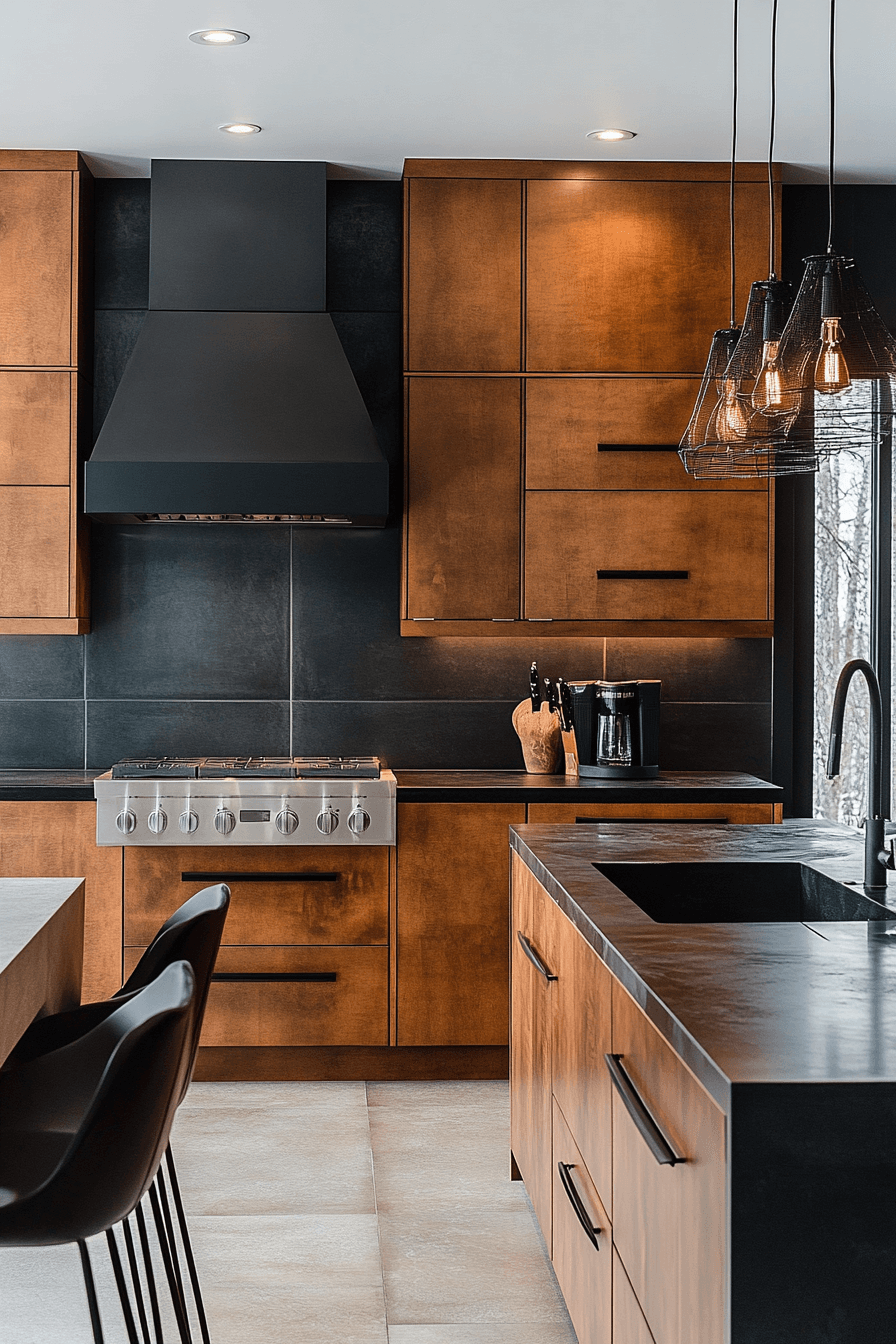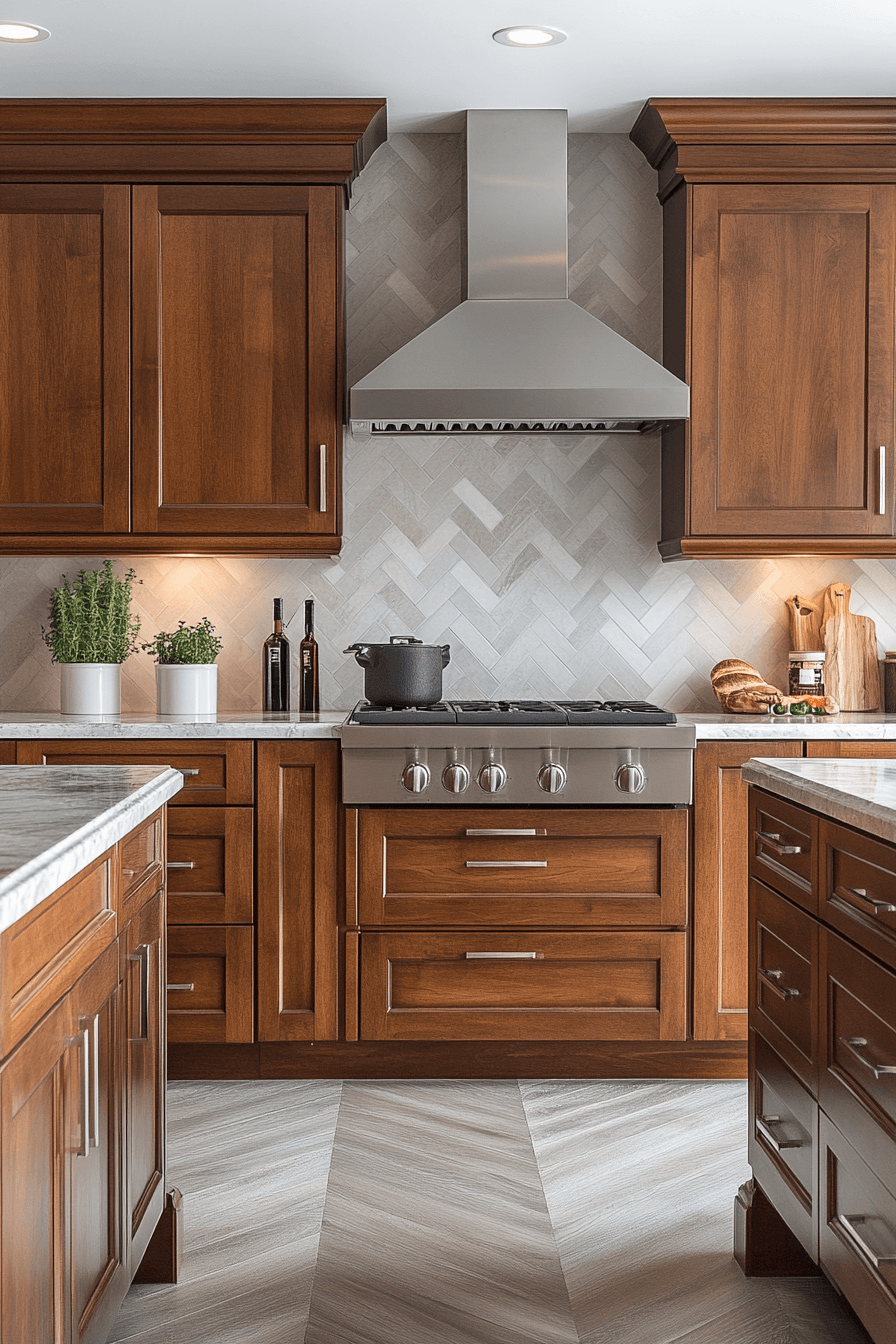 Deep-toned maple kitchen cabinets add dramatic warmth and luxurious character. Their rich color contrasts beautifully with lighter walls and countertops. Maple’s durability ensures beauty that lasts through daily use. These cabinets command attention while remaining timeless. Ideal for kitchens made for gathering and entertaining.