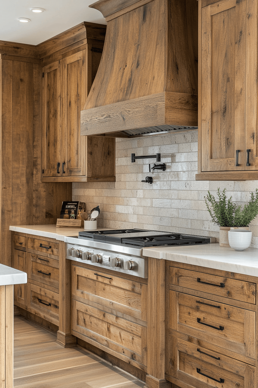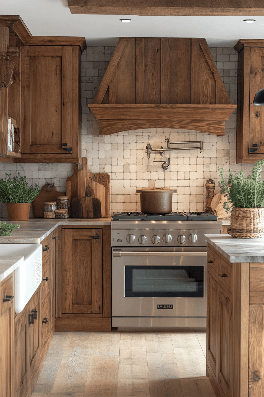 Rustic-inspired maple kitchen cabinets blend organic texture with polished craftsmanship. Natural grain adds personality while clean construction keeps the look refined. These cabinets suit transitional and modern farmhouse kitchens beautifully. Pair them with stone, aged metals, or matte finishes for balance.