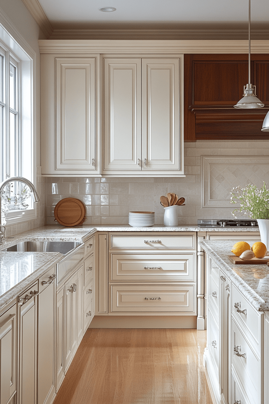 Sun-washed maple kitchen cabinets brighten kitchens with an airy, natural glow. Their warm tone reflects light beautifully, energizing everyday routines. Maple’s versatile grain pairs well with soft pastels or bold accents. The result feels cheerful and welcoming. These cabinets bring warmth without heaviness.