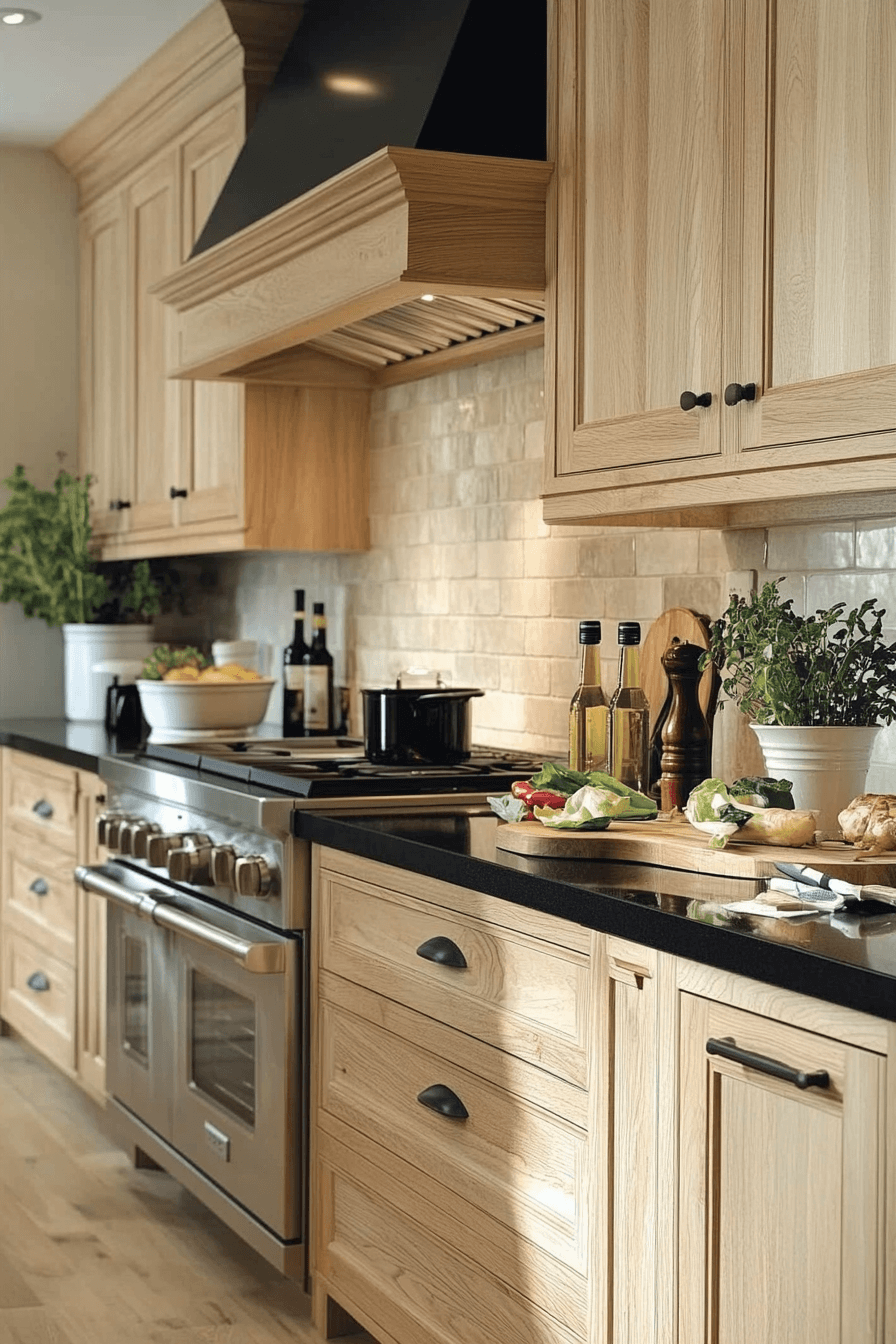 Hand-finished maple kitchen cabinets celebrate craftsmanship and individuality. Unique grain details give each cabinet character. Maple’s durability supports both beauty and longevity. These cabinets suit eclectic and heritage-inspired homes. The kitchen feels soulful and authentic.
