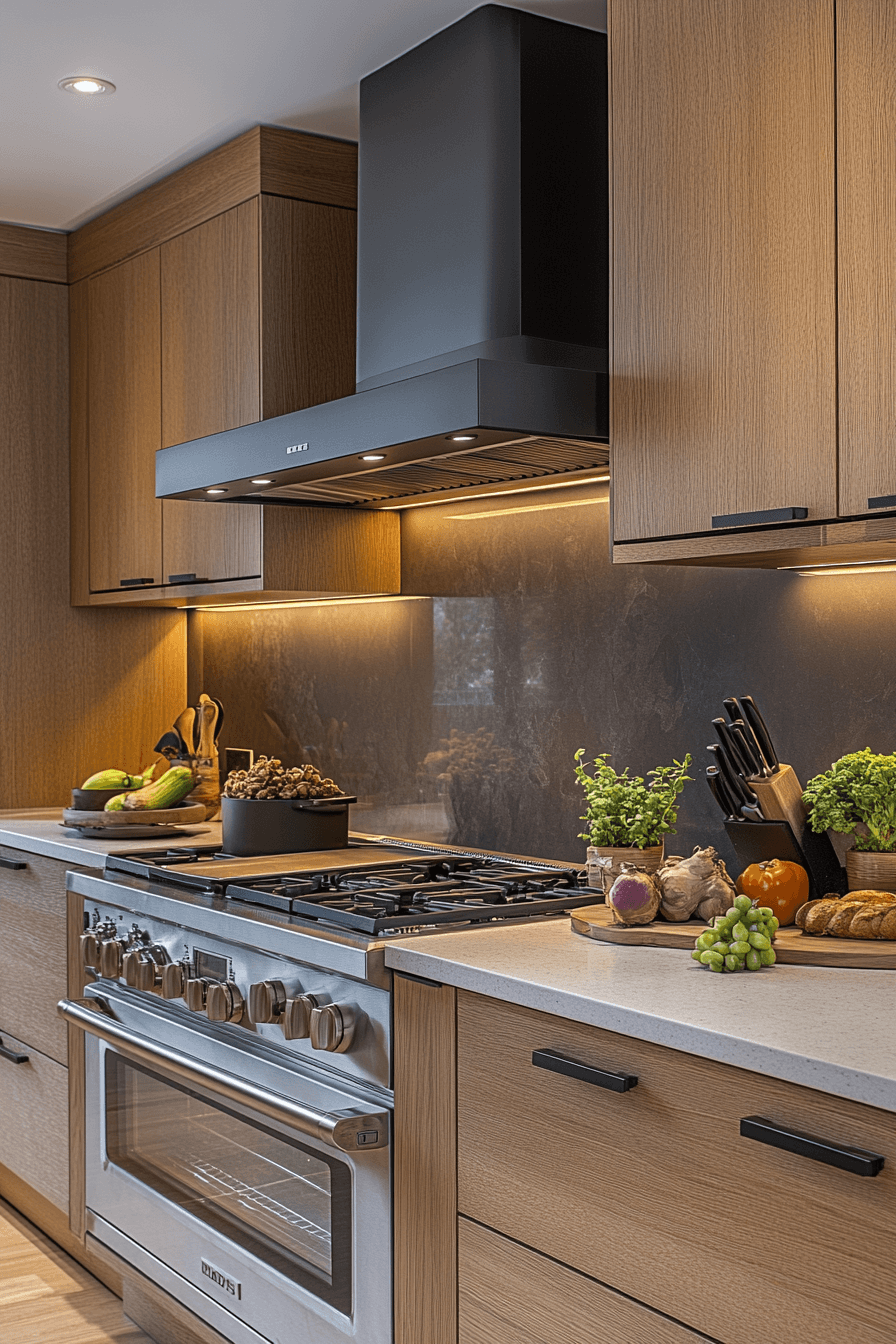 Satin-finish maple kitchen cabinets introduce soft luxury through touchable texture. The velvety surface elevates maple’s natural tones. These cabinets feel refined without excess shine. They pair beautifully with brushed metals and ambient lighting. The space feels calm and elevated.