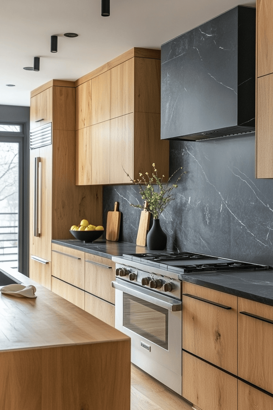 Urban-inspired maple kitchen cabinets offer modern simplicity with organic warmth. Their smooth surfaces and clean grain suit contemporary lifestyles. These cabinets pair beautifully with concrete, metal, and bold lighting. The look feels confident and uncluttered. Perfect for lofts and modern homes.