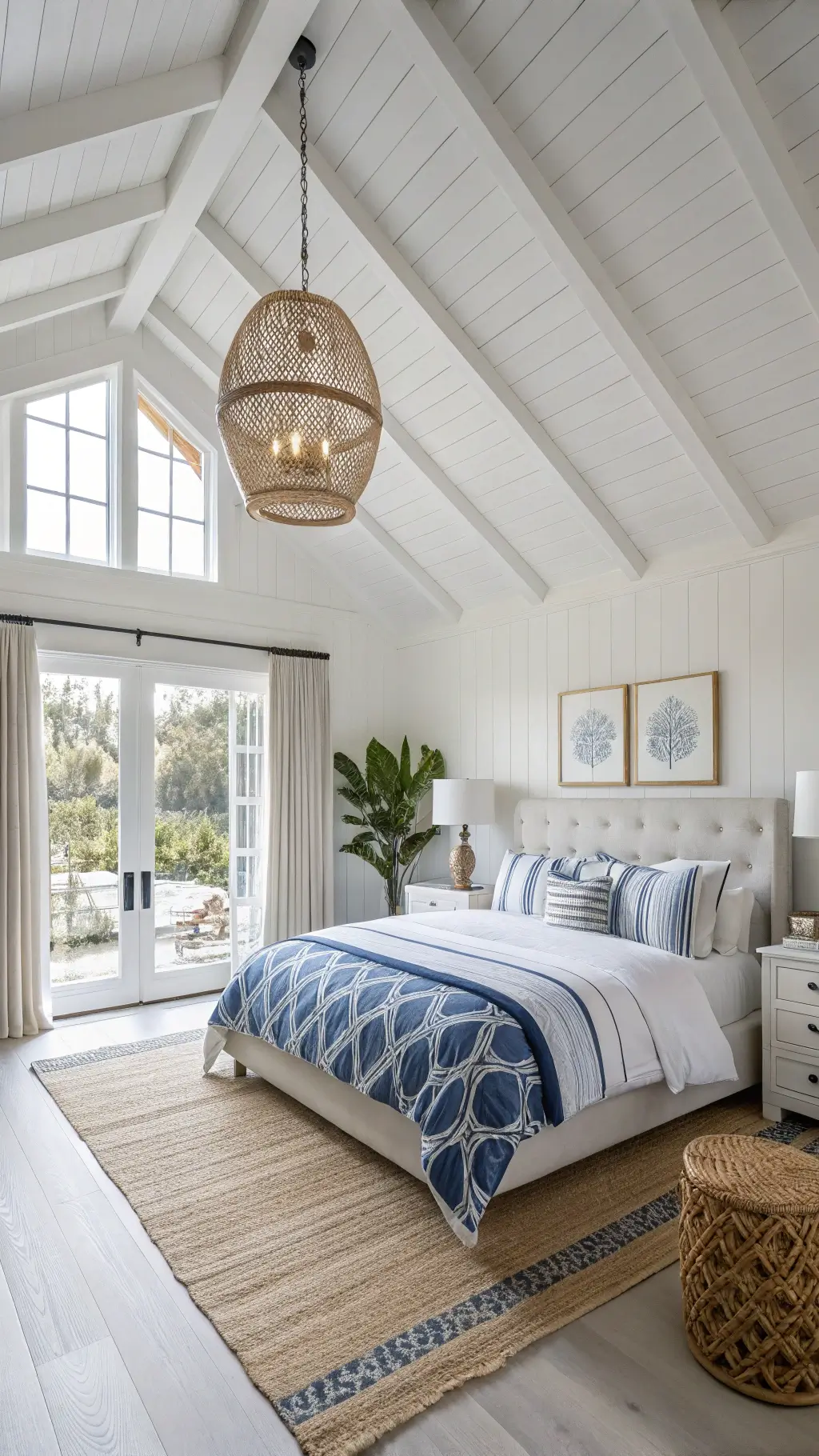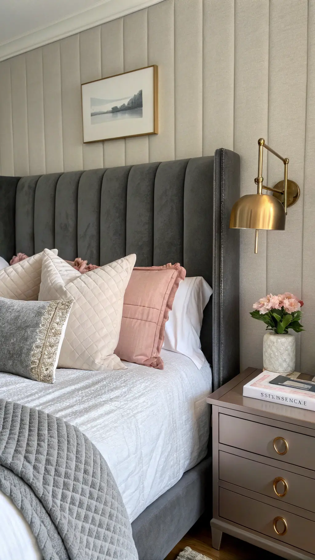 • Mix textures: crisp sheets + plush duvet + chunky knit throw