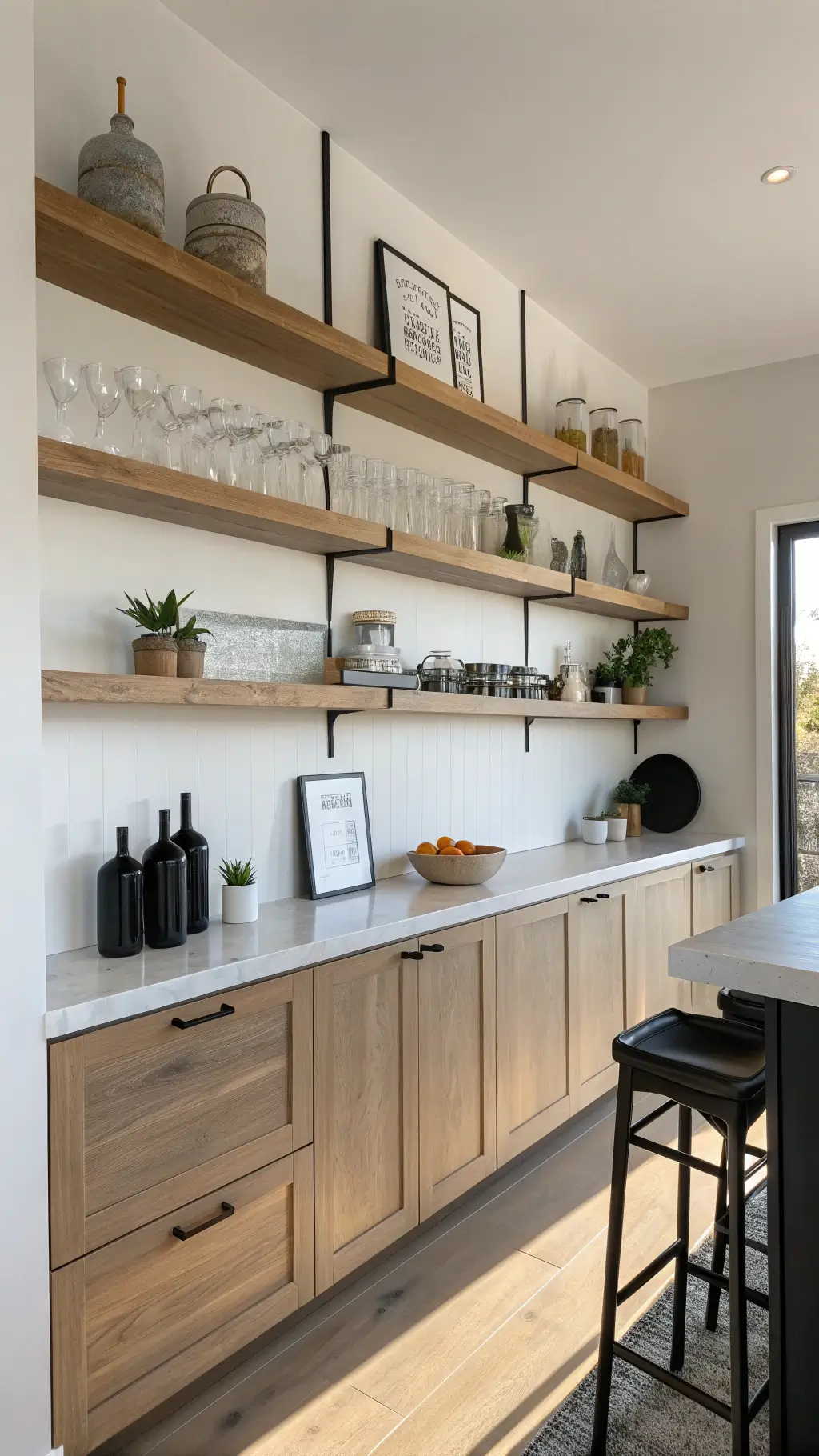 Sleek doesn’t mean boring. Think glass and metal shelving that makes your space look like a design magazine spread.
