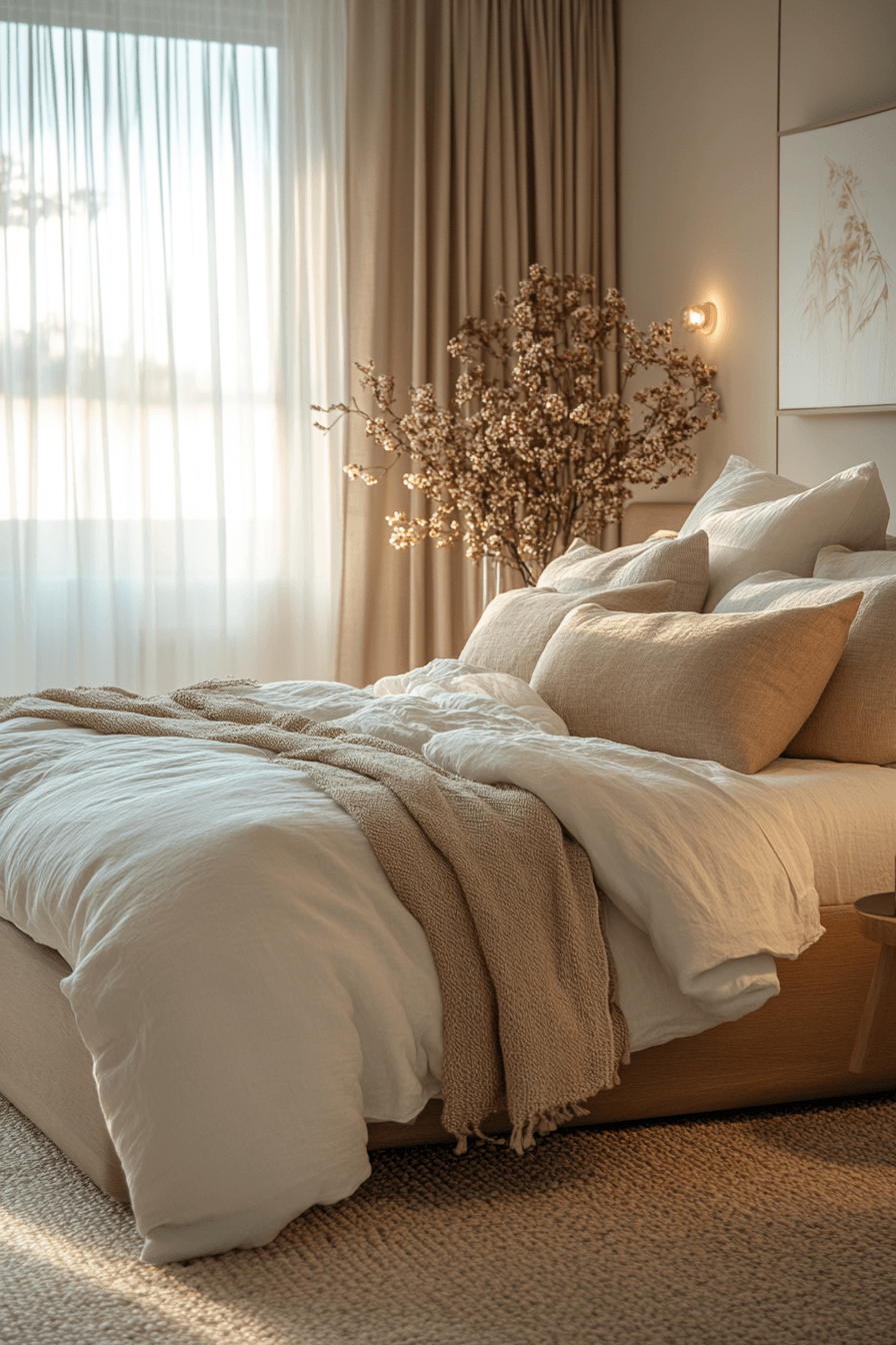 10. Cozy Neutral Bedroom Layers