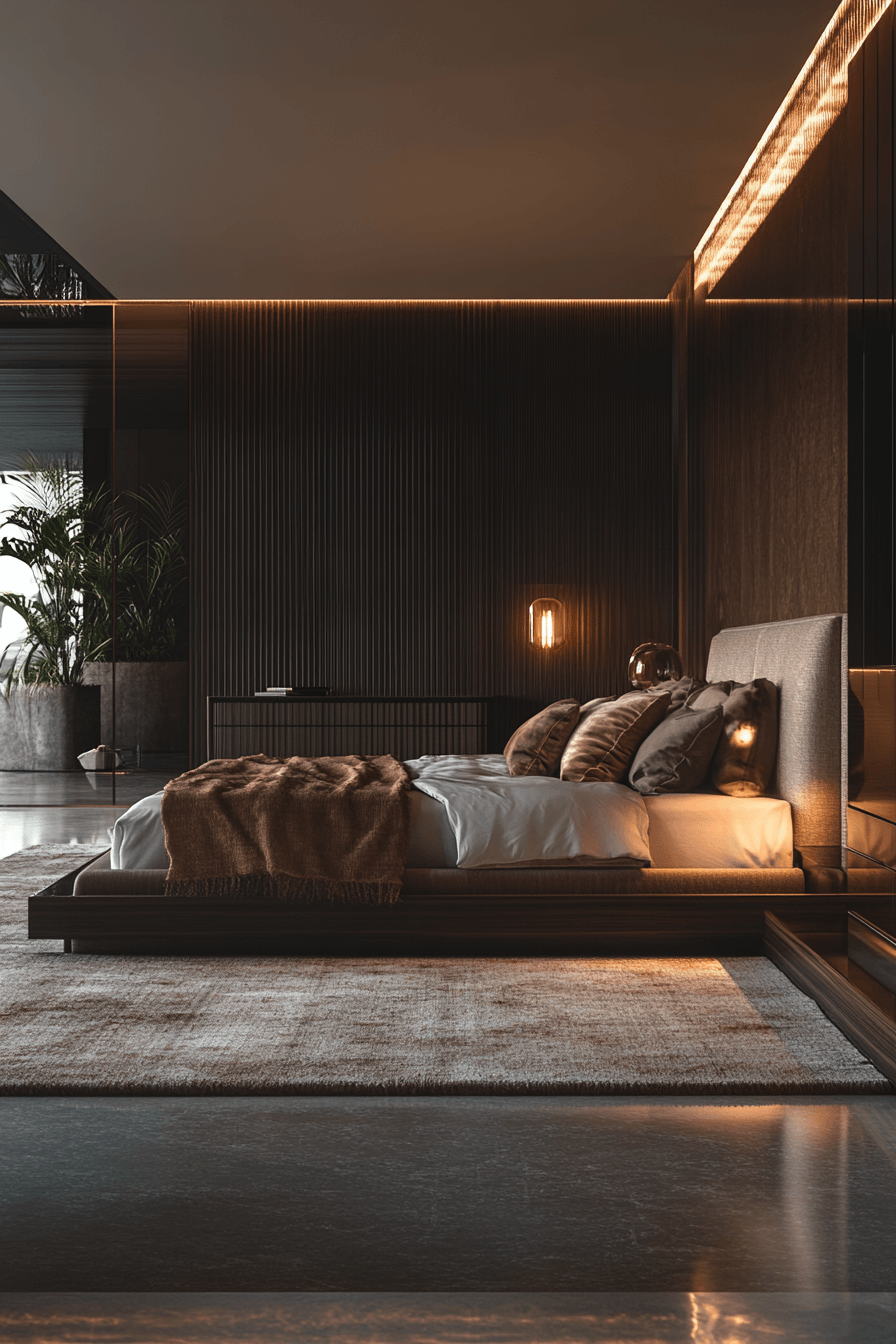 Ambient lighting enhances a modern bedroom interior by creating a soft glow that feels warm and relaxing. Hidden LEDs add depth and dimension. Reflective surfaces amplify brightness. Neutral bedding balances the look. The space feels calm and inviting. The design feels modern and soothing. Transform your bedroom with lighting today!