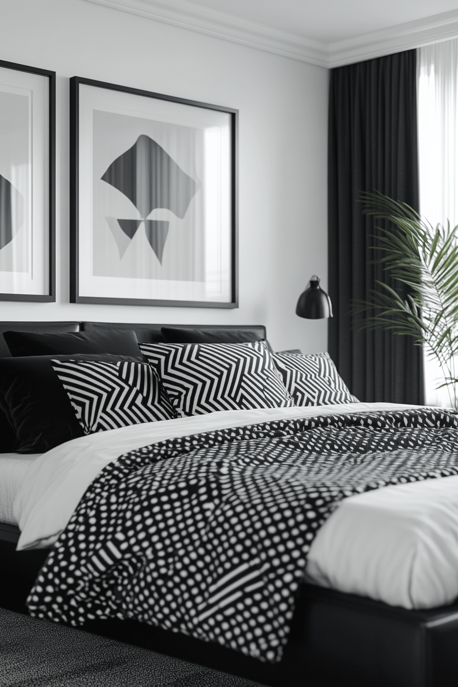 Monochrome styling refines a modern bedroom interior with clean contrasts that feel timeless and sophisticated. Black and white tones create a clear visual structure. Sleek furniture enhances the streamlined look. Soft textiles add warmth and comfort. Metallic accents introduce subtle shine. The balance feels sharp yet inviting. Upgrade your bedroom with this modern monochrome approach today!