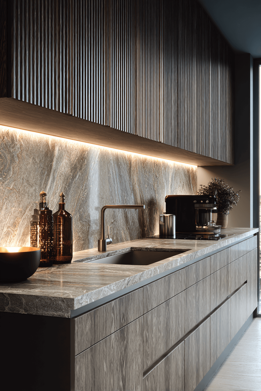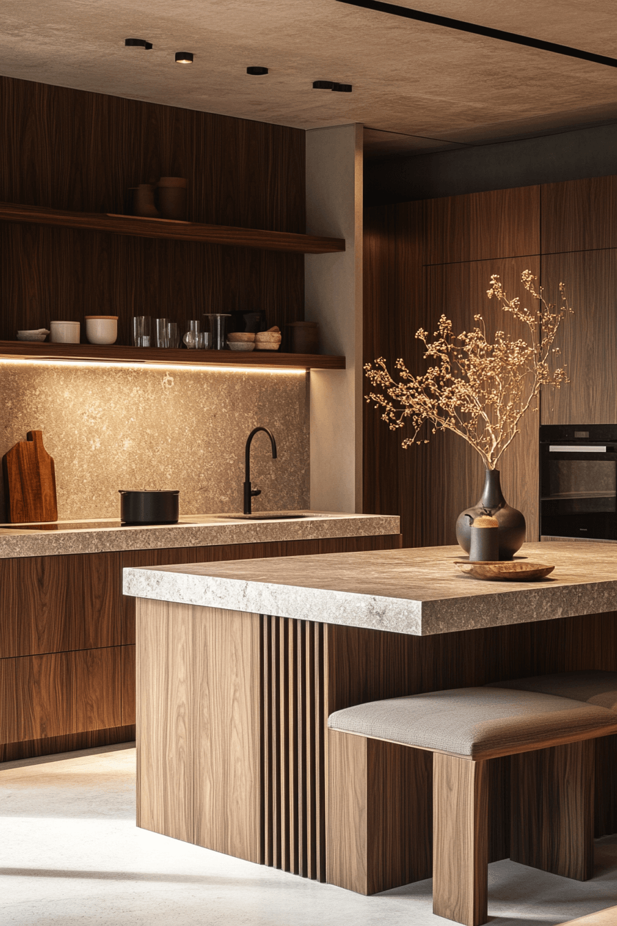 Textured wood cabinetry adds tactile richness to this modern luxury kitchen. Subtle fluting or vertical grain creates depth while staying contemporary. Matte stone counters and sleek fixtures ground the design. Task lighting enhances the chef-ready atmosphere. Natural warmth meets precision in perfect balance. Tap to see how wood textures can refine your modern luxury kitchen!