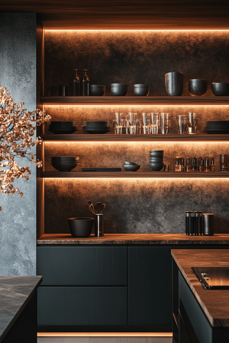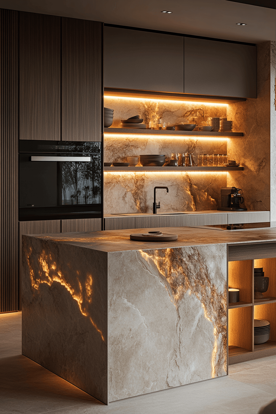 Backlit niches add layered drama to this modern luxury kitchen. Illuminated shelves highlight curated decor. Clean cabinetry allows lighting features to stand out. Premium finishes enhance sophistication. Mood and function merge beautifully. Click to see how backlit details can transform your modern luxury kitchen!