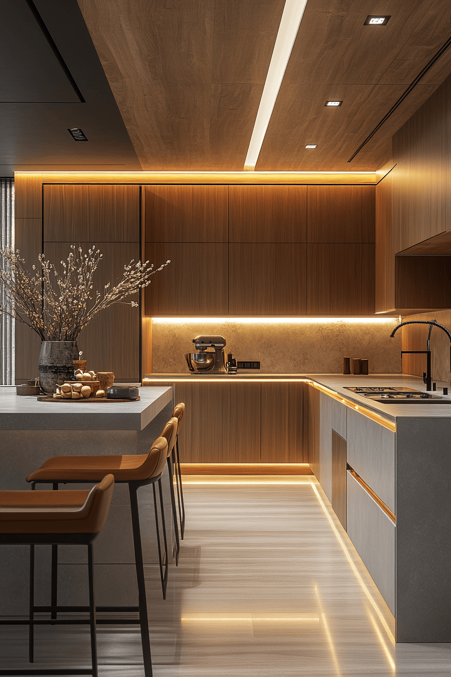 Linear track lighting reinforces geometry in this modern luxury kitchen. Adjustable heads provide task and ambient illumination. The elongated fixtures echo cabinetry lines. Quality materials complete the polished aesthetic. Lighting becomes both functional and decorative. Tap to brighten your modern luxury kitchen with intention!