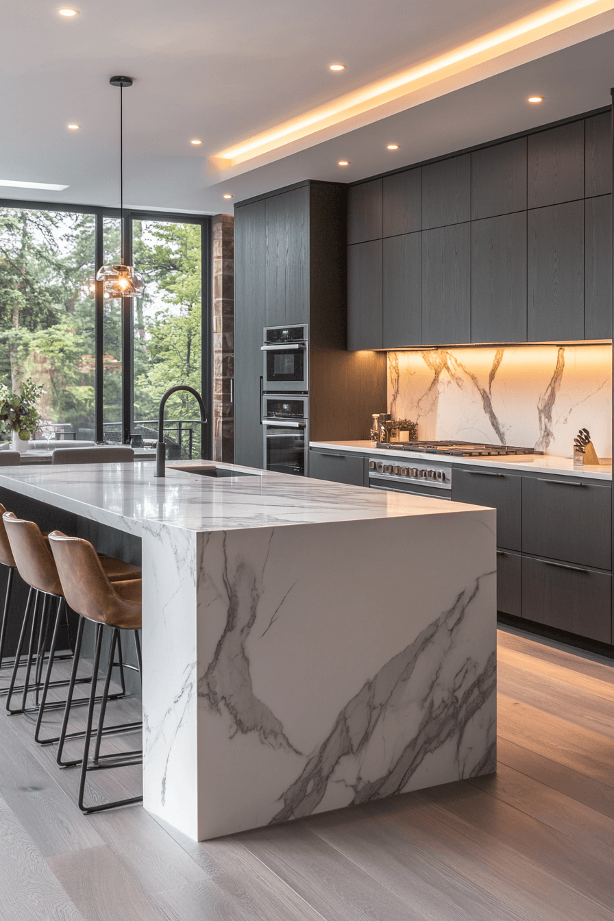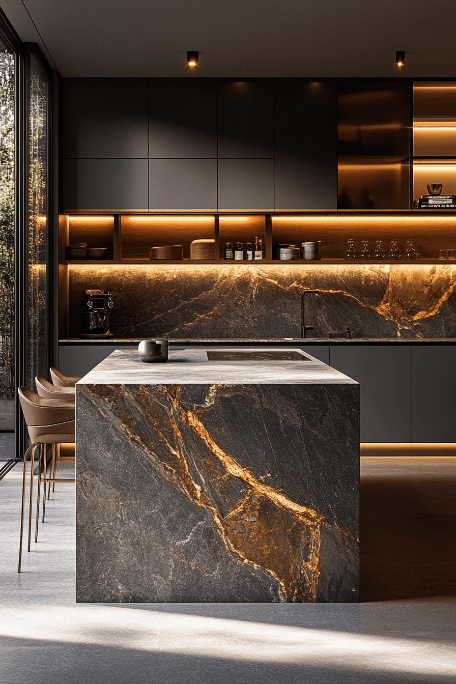 Step into the world of modern luxury kitchens, where sleek design meets sophisticated functionality. From dramatic matte black cabinetry to sculptural waterfall islands, these 27 stunning kitchen ideas showcase the perfect balance of contemporary aesthetics and timeless elegance. Whether you’re drawn to minimalist slab fronts, warm bronze accents, or innovative lighting solutions, these inspiring spaces prove that today’s luxury kitchen is as much about creating an experience as it is about culinary convenience.