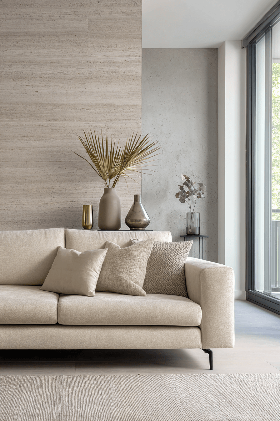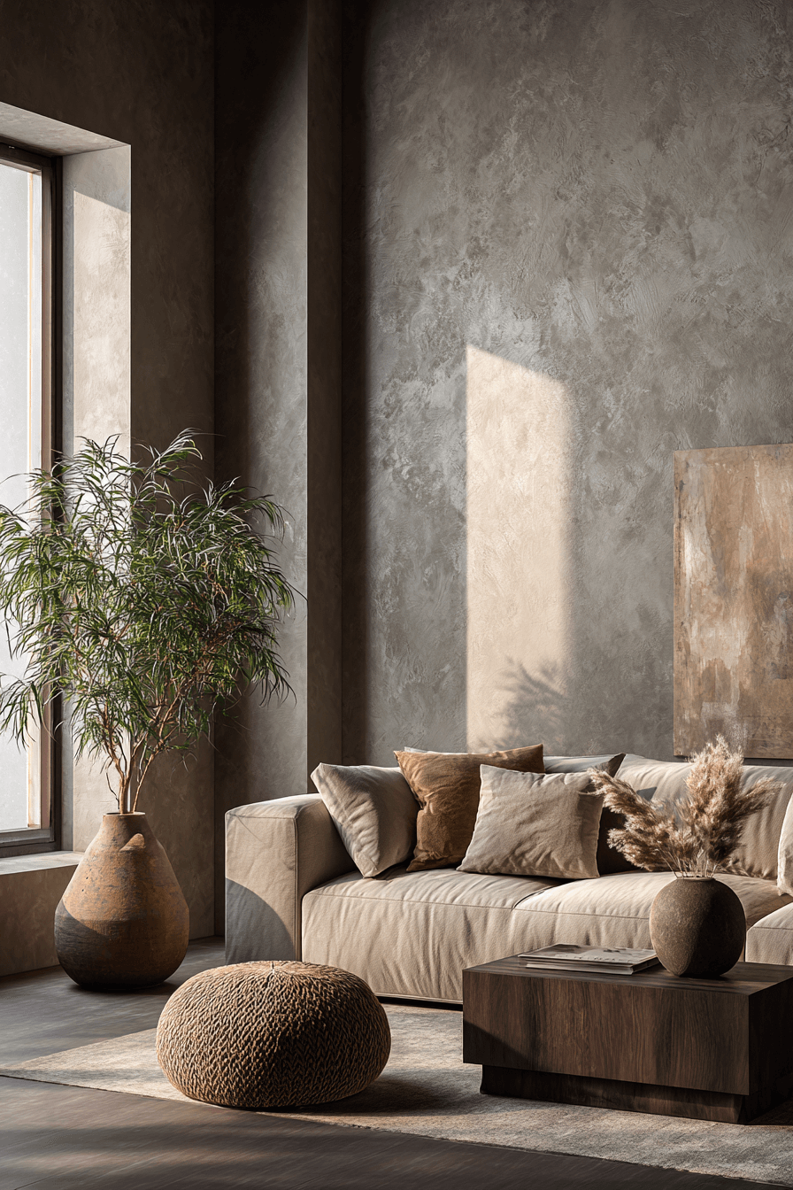 Seamless microcement walls give this modern luxury living room sculptural depth. Continuous surfaces feel sleek and gallery-inspired. Warm textiles soften the minimalist envelope. Neutral tones keep the look refined. The aesthetic feels custom and cutting-edge. Click to explore how microcement can modernize your modern luxury living room!