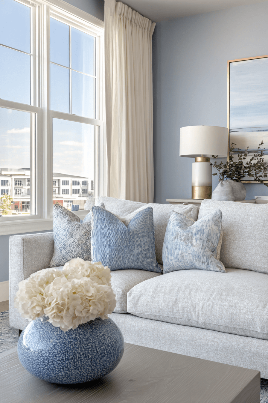 Soft coastal tones refresh this modern luxury living room with breezy elegance. Sandy neutrals and gentle blues create a calming foundation. Clean silhouettes prevent a themed look. Natural textures add depth and warmth. The result feels fresh yet upscale. Click to explore how coastal hues can elevate your modern luxury living room!