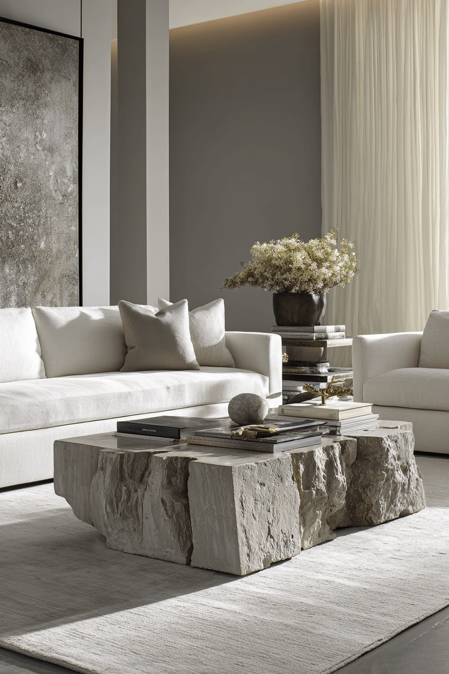In this modern luxury living room, the coffee table becomes a piece of functional art. Crafted from stone, metal, or carved wood, it commands attention. Streamlined sofas and understated rugs allow the sculptural piece to shine. Carefully styled decor enhances the gallery-like mood. Every element feels intentional and elevated. Tap to explore statement-making tables for your modern luxury living room!