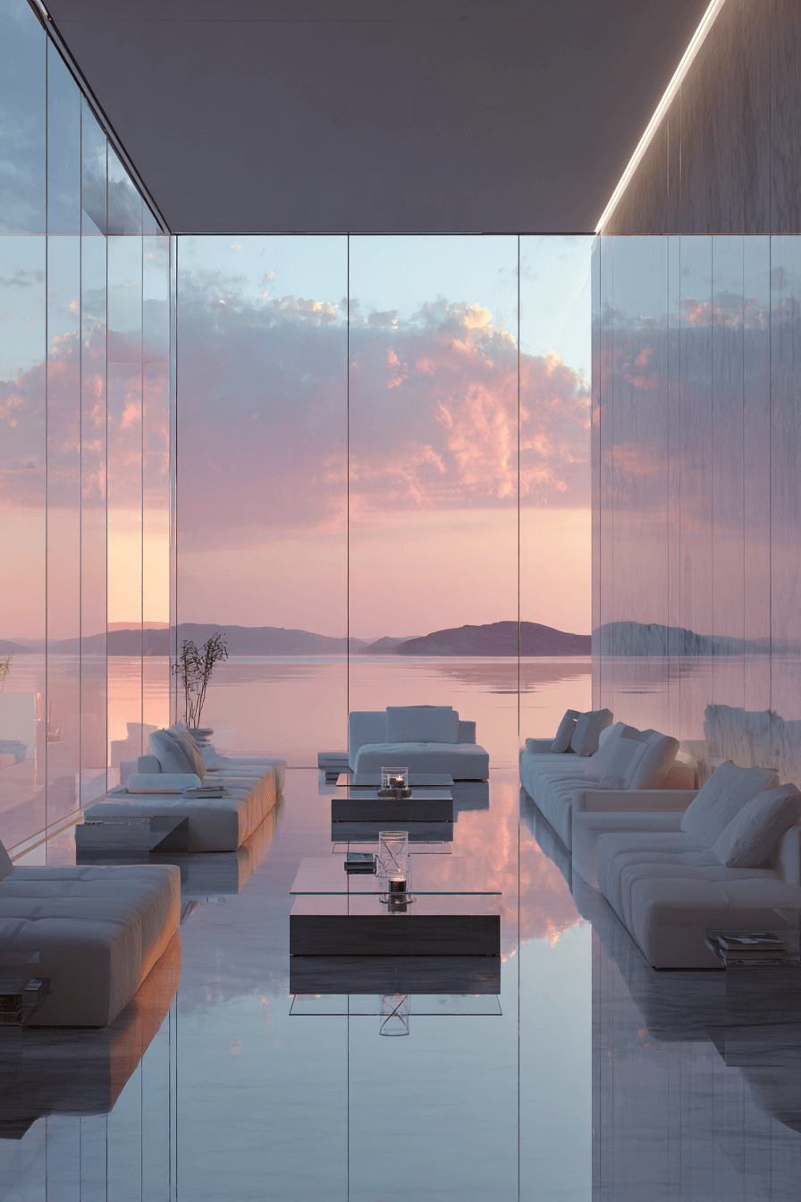 Expansive windows flood this modern luxury living room with natural light. Low-profile furniture preserves openness and highlights the view. Reflective finishes amplify brightness throughout the space. Neutral tones keep attention on the architecture. The room feels airy and seamlessly connected to its surroundings. Click to see how maximizing light can transform your modern luxury living room!