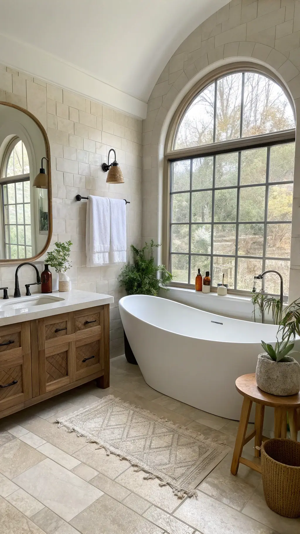 If you can’t, a large arched mirror or arched wall art works beautifully as a visual reference.