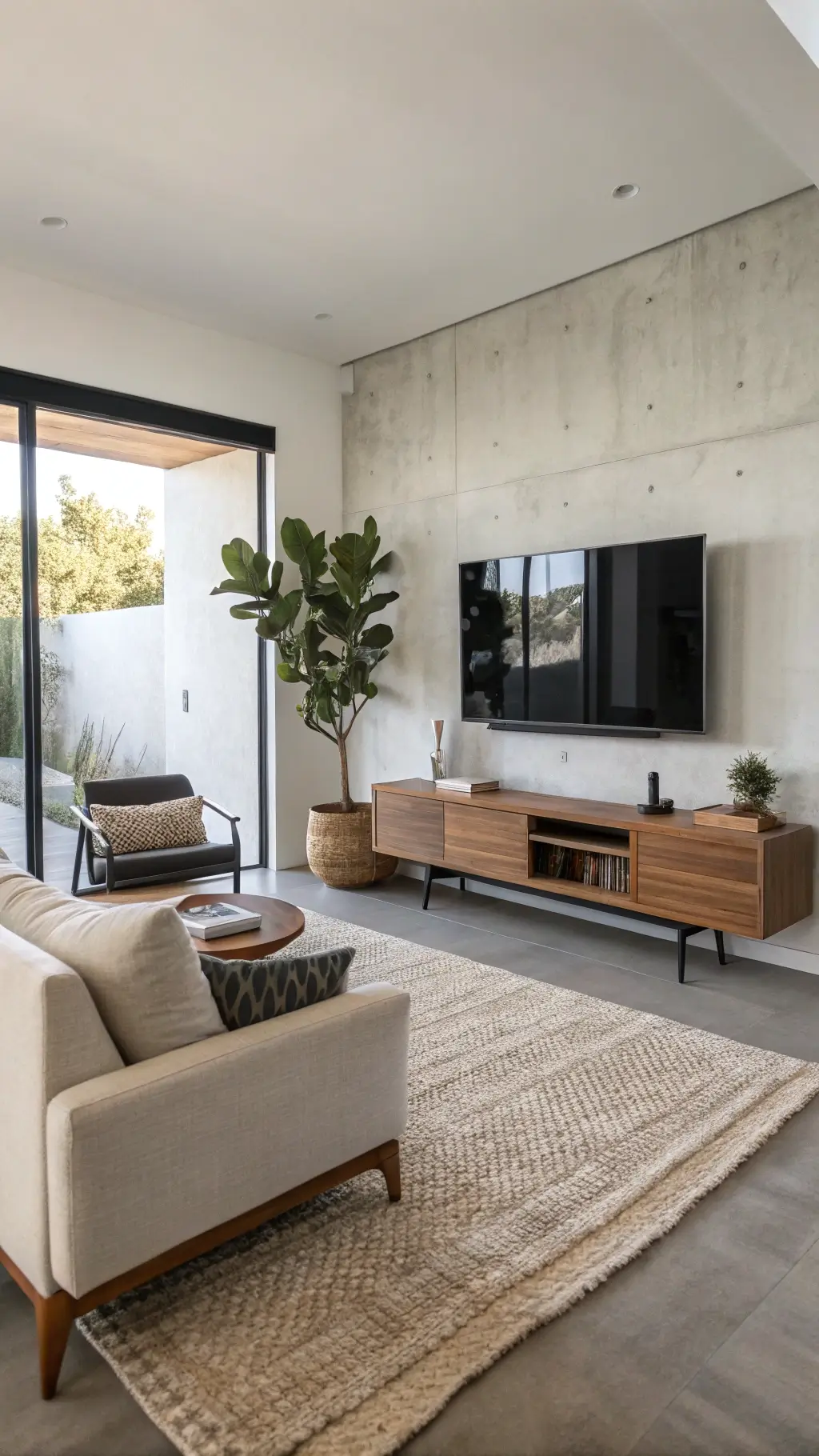 Modern minimalist living room, minimalist space ideas, cozy minimalist decor, light-filled living room, neutral palette, clutter-free living