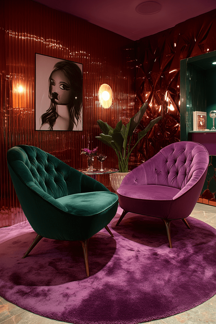 Reflective chrome paired with plush velvet defines a bold duality in Neo Deco interior design. Sleek metal frames contrast beautifully with soft seating and drapery. The blend feels futuristic while honoring classic Deco glamour. Living rooms and reading nooks instantly gain tailored elegance through this mix. Texture and polish work together in perfect sync. Tap to bring glamorous balance into your interiors!